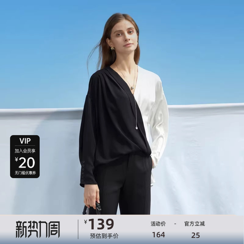 V领衬衫 雪纺质地 撞色拼接