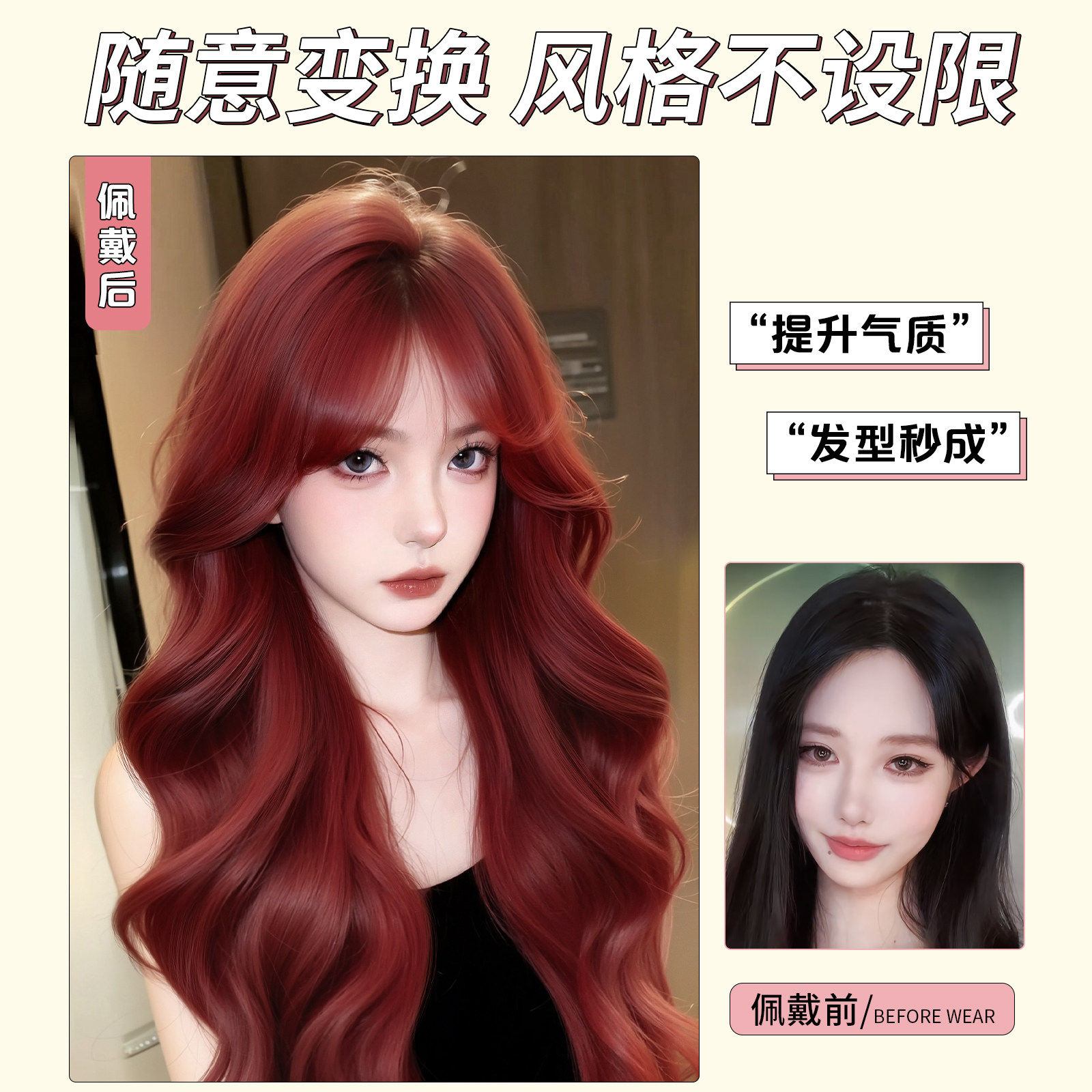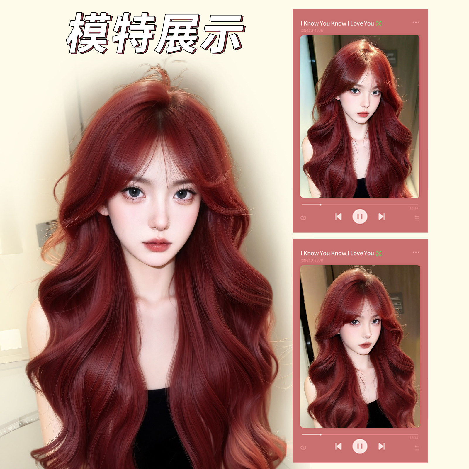 假发全头套女长卷发树莓红大波浪Lolita自然日常仿真发整顶假发套