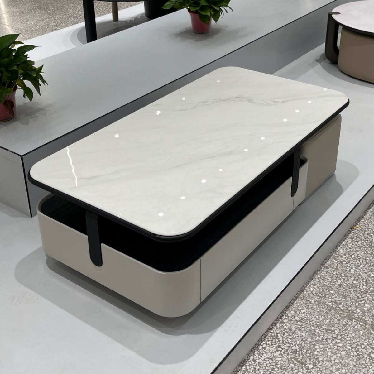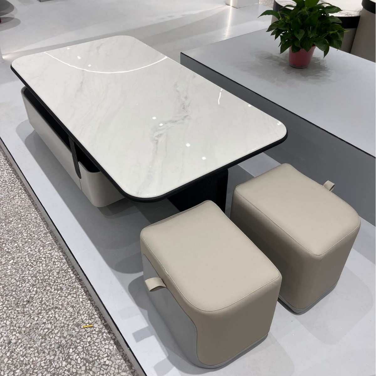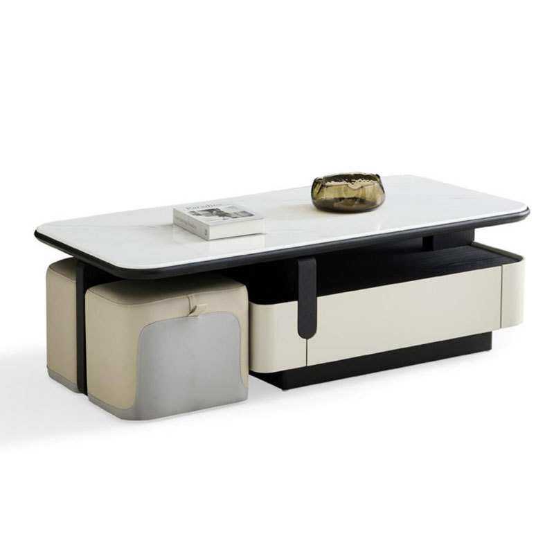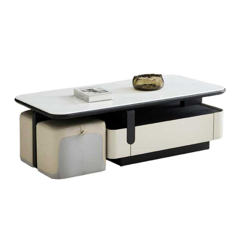 佛山家具茶几中古风极简微晶石方形茶几家用小户型伸缩带凳子创意
