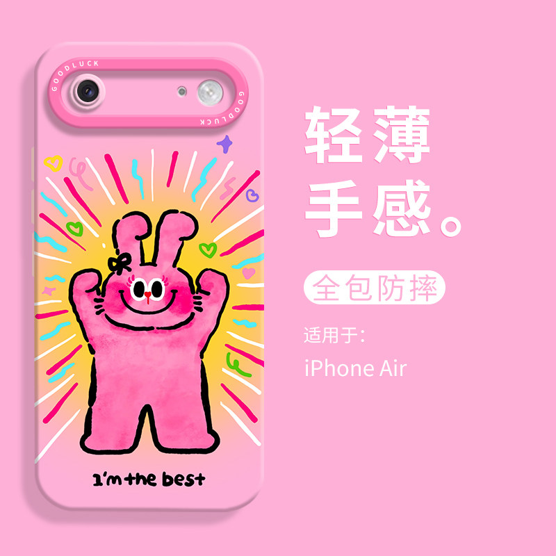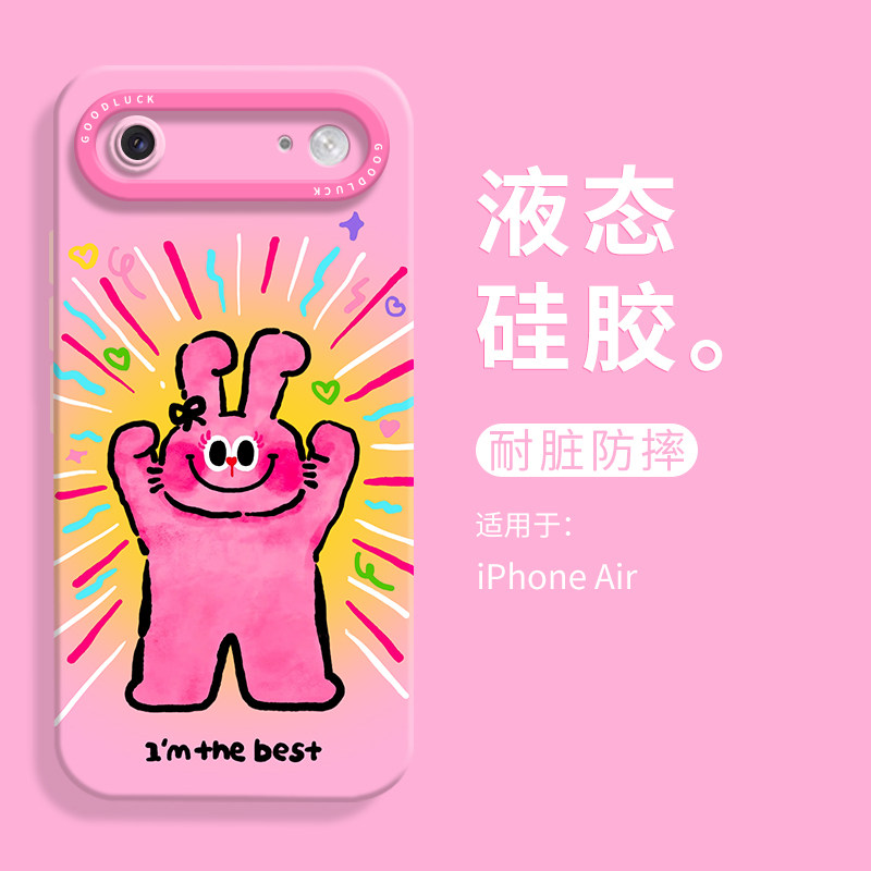 可爱自信兔兔适用苹果air手机壳iPhoneAIR液态air全包瞳眼硅胶壳air保护套ip带挂绳网红男女个性网红卡通
