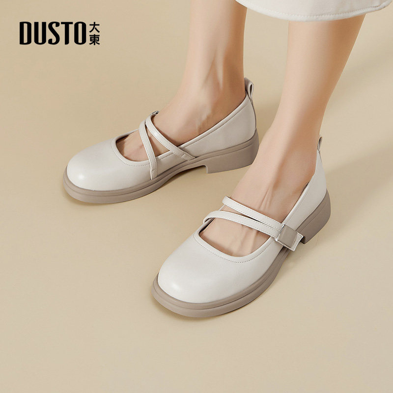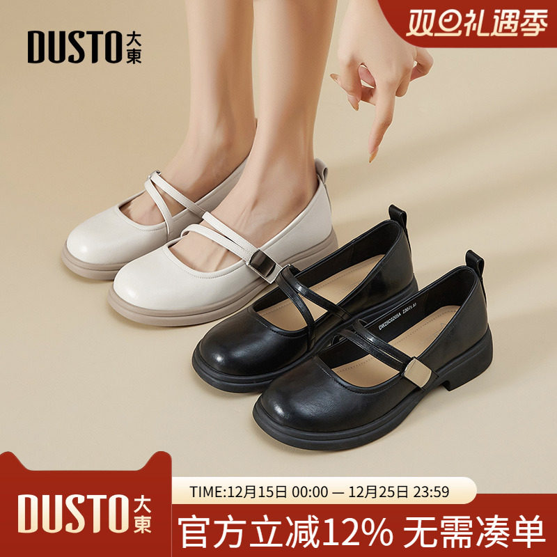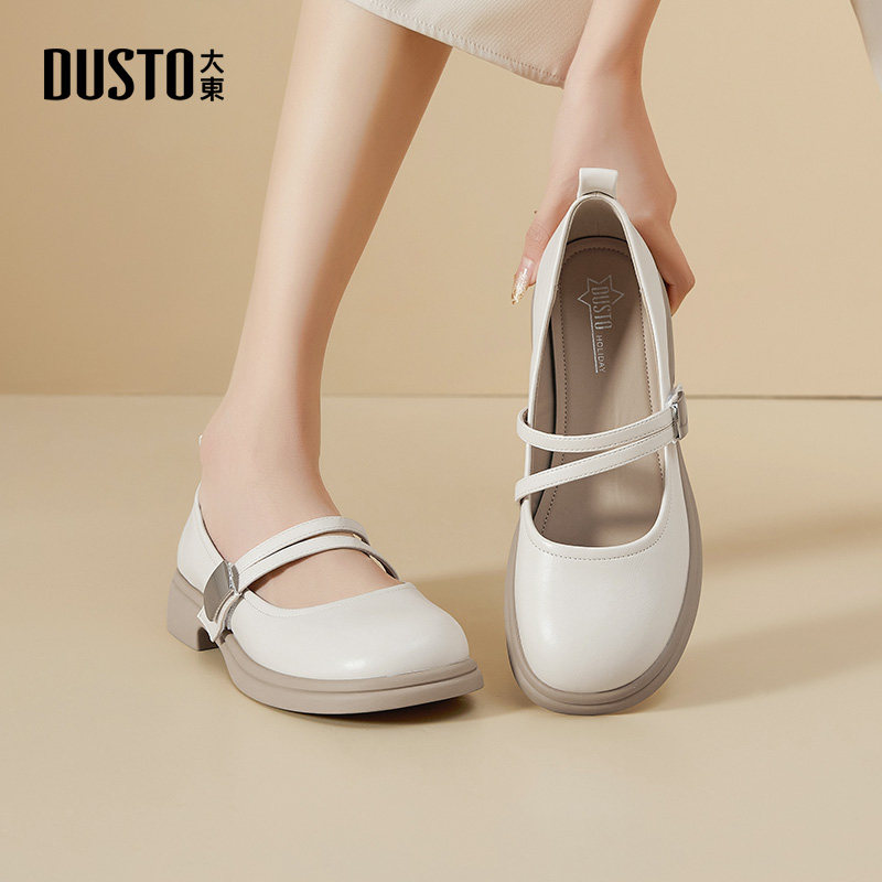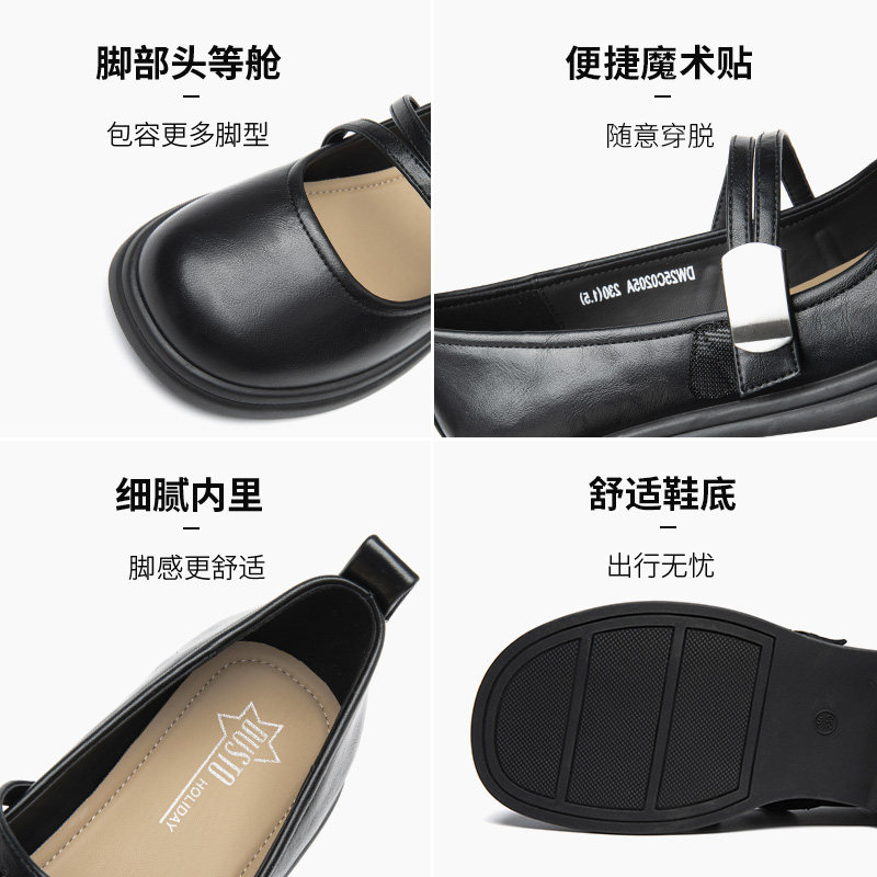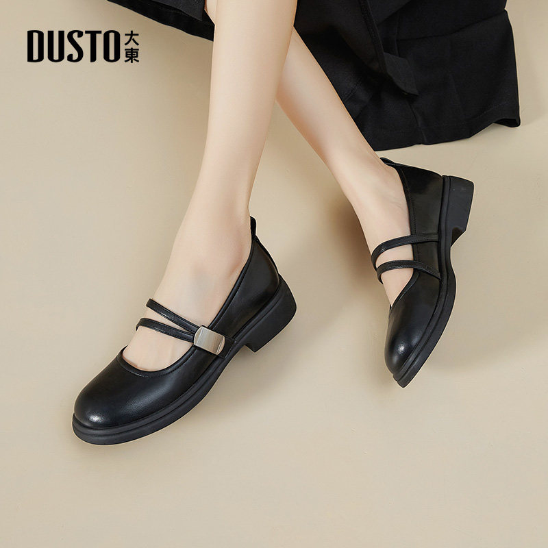 大东玛丽珍鞋女鞋2025秋季新款甜美圆头粗跟纯色小皮鞋C0205