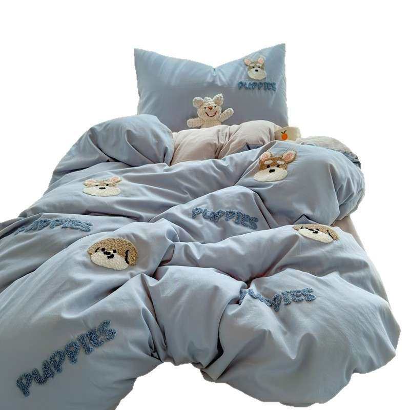 A类全棉毛巾绣学生宿舍床上三件套纯棉床单被套床笠四件套一整套3