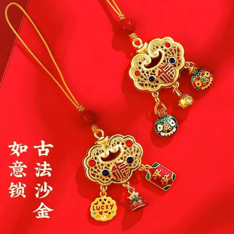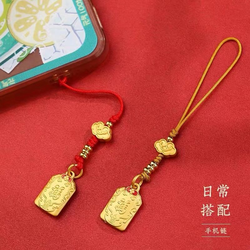 平安如意本命年黄金色手机链子挂绳中手机链吊坠貔貅手机挂件