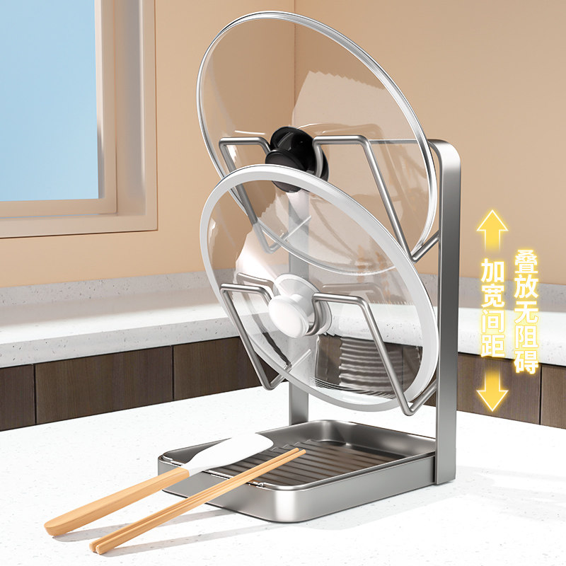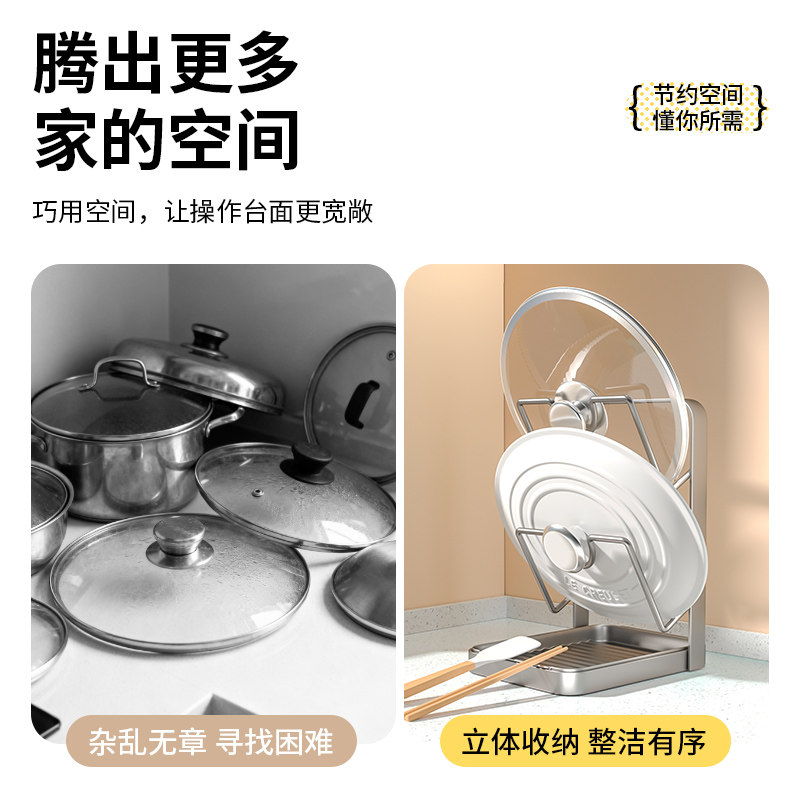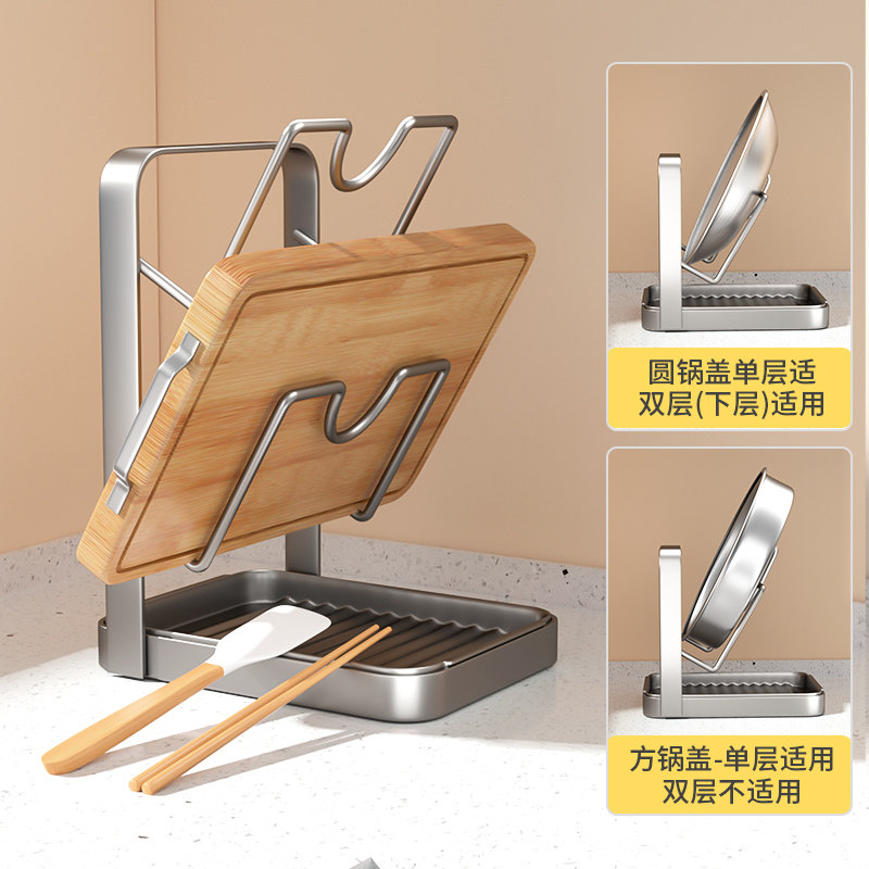 家用放锅盖砧板收纳架锅铲置物架锅盖架坐式厨房台面盘放置切菜