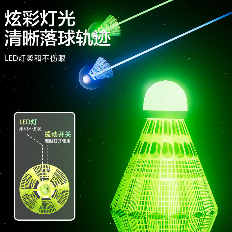 夜光羽毛球发光防风夜用荧光耐打夜间鹅毛室外夜晚亮灯带灯尼龙球