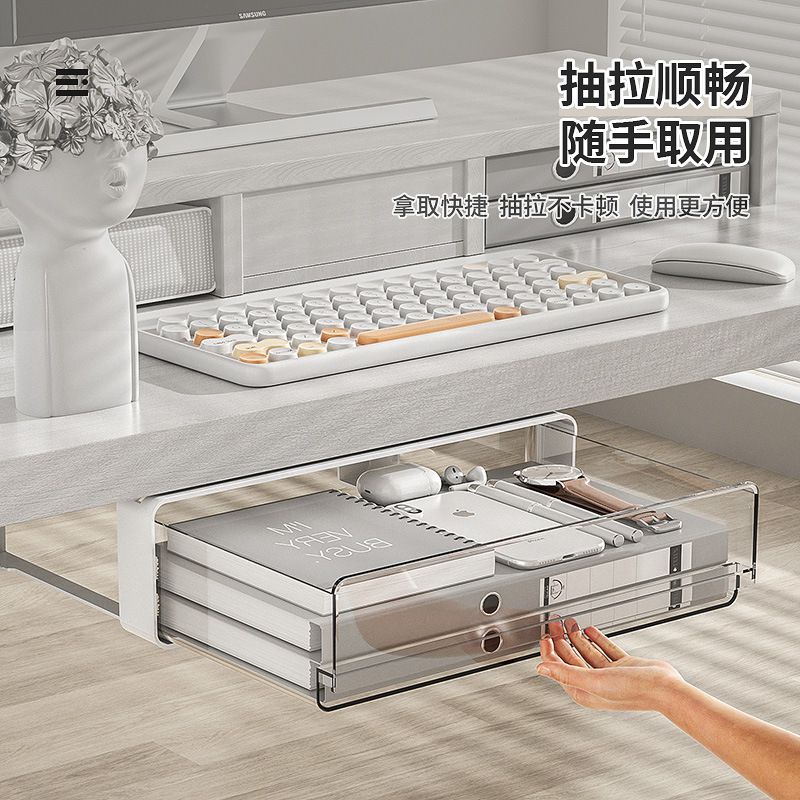 办公室桌面文件储物盒化妆品储抽屉收纳盒塑料式物桌下抽屉柜子挂