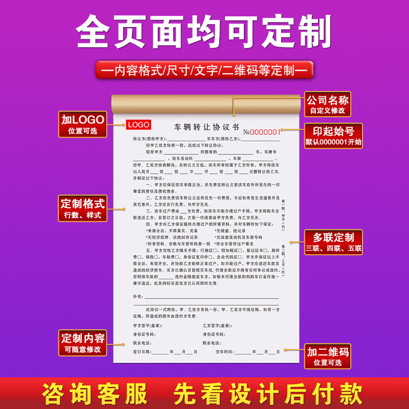 车辆转让协议书买车租车购车汽车代购订车销售单机动车收购租赁抵押二联单购车借车委托本二手车买卖交易合同