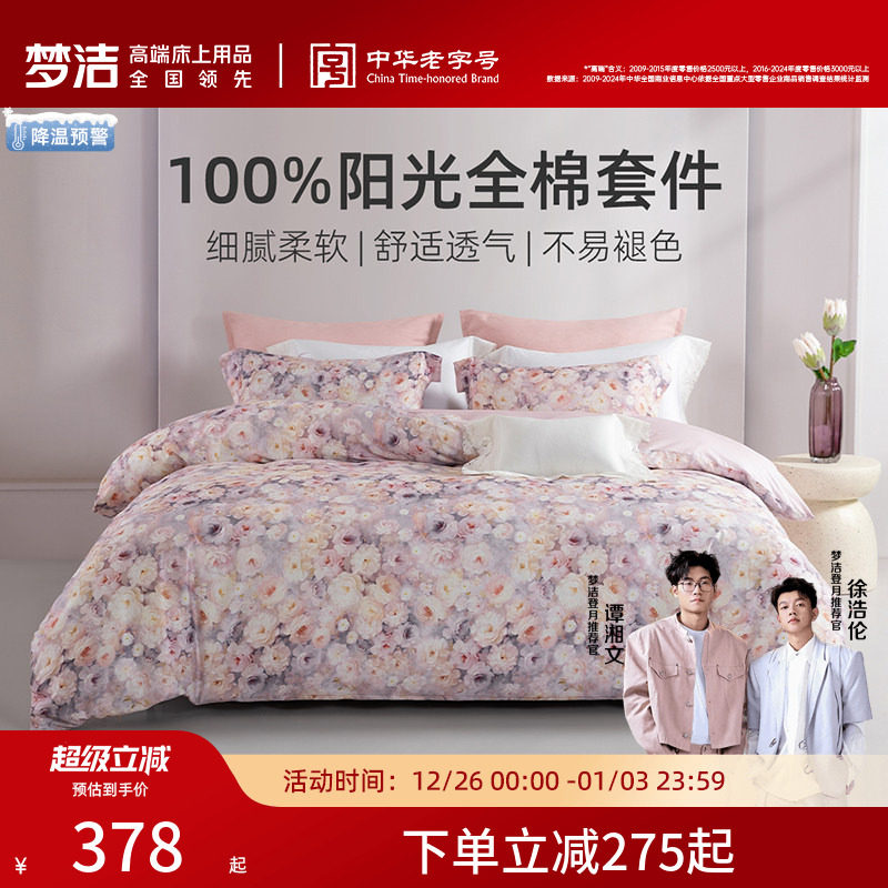 梦洁家纺床上四件套床单纯棉100全棉2025新款被套学生秋四季床品