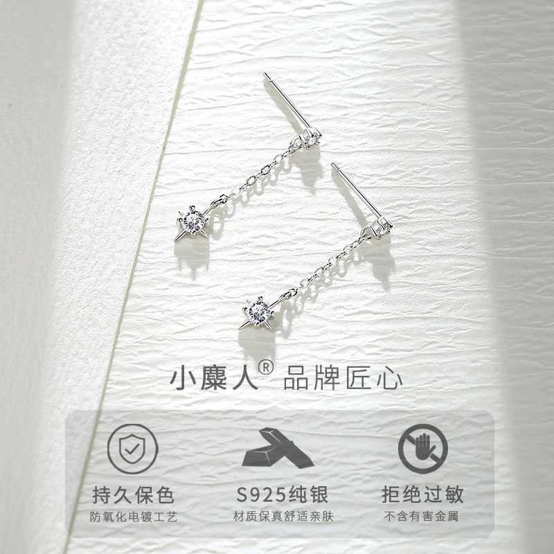 小麋人925纯银耳钉女流苏耳环耳饰星星高级感冷淡风小众设计气质