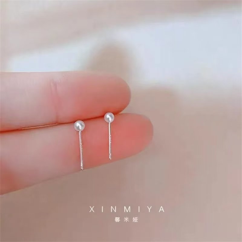 迷你小珍珠耳钉养耳洞纯银女潮百搭简约气质日常睡觉不用摘镀银针