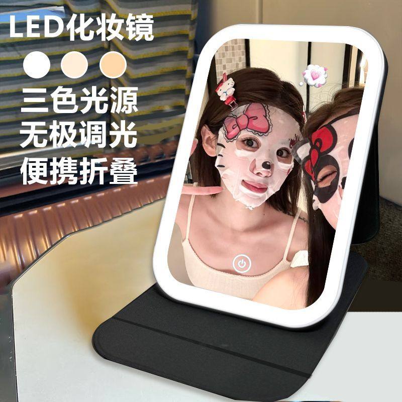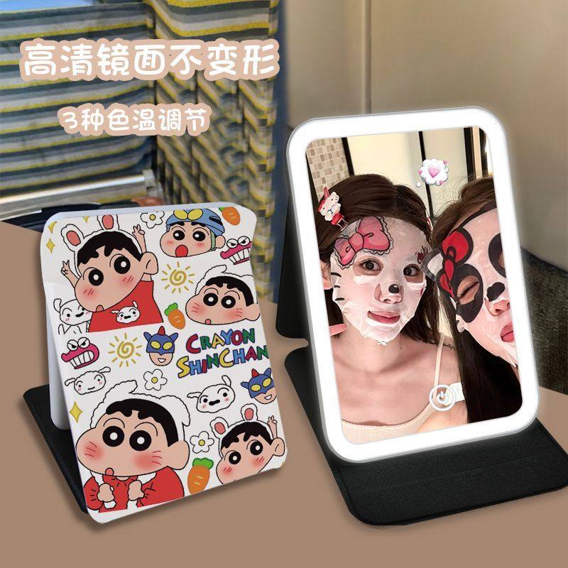 蜡笔小新LED灯化妆镜带灯镜子随身折叠便携式学生宿舍桌面梳妆镜