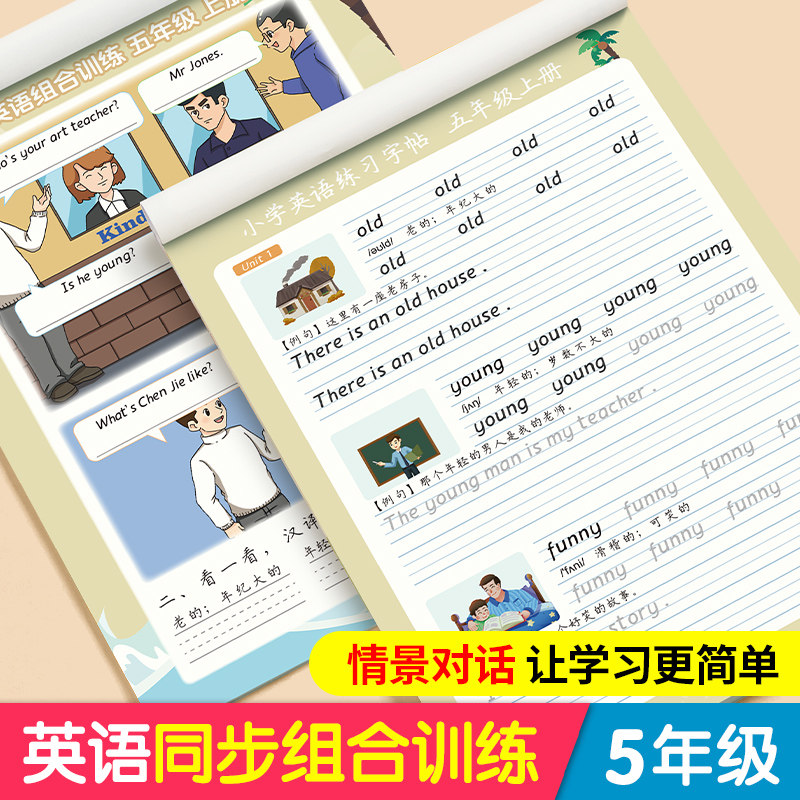 六品堂五年级衡水体英语字帖上册下册六年级小学生专用英文练字帖同步人教版课本单词每日一练儿童钢笔描红硬笔书法练字本临摹书写