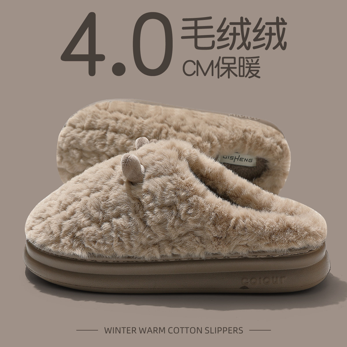 轻臣冬季棉拖鞋女款2026新款秋冬防滑厚底保暖情侣毛绒毛毛拖鞋