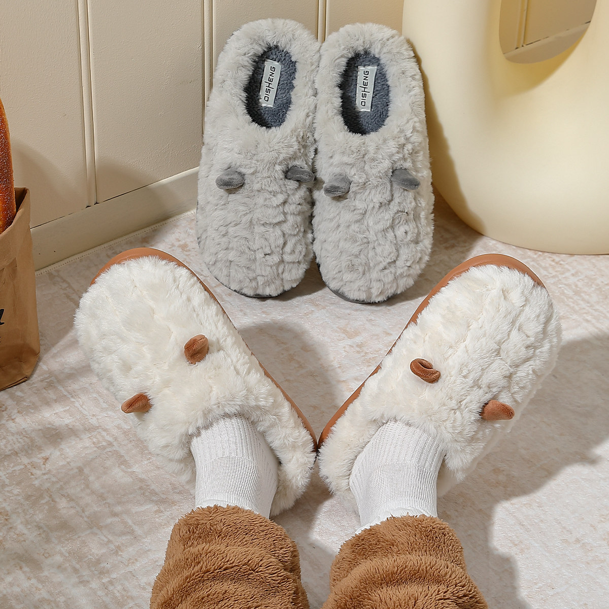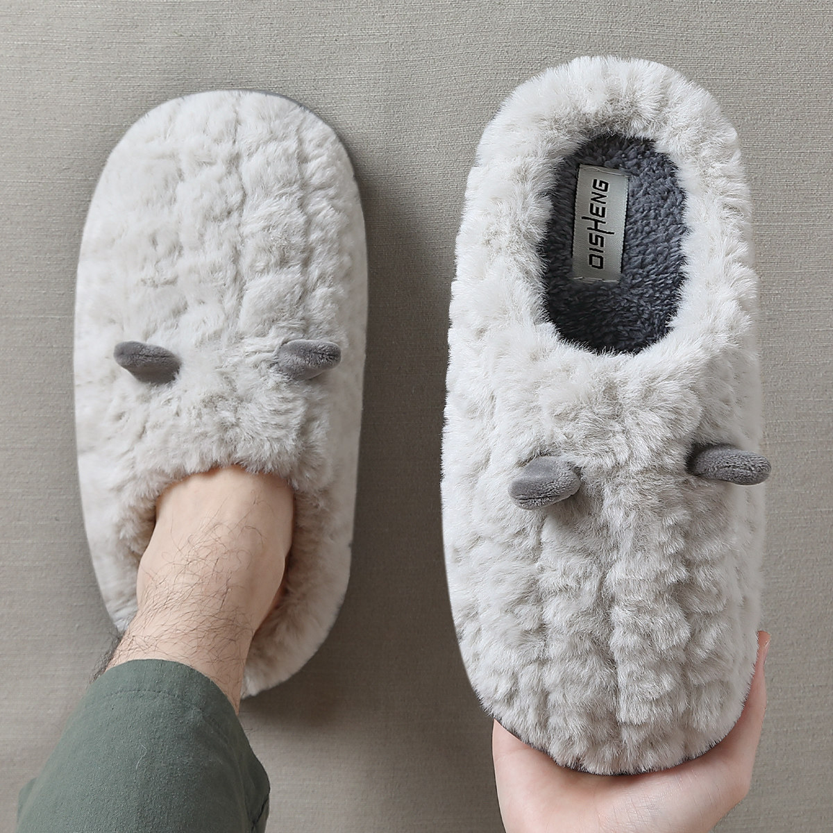 红豆踩屎感棉拖鞋女士秋冬季室内家居2025新款毛绒保暖情侣棉拖男