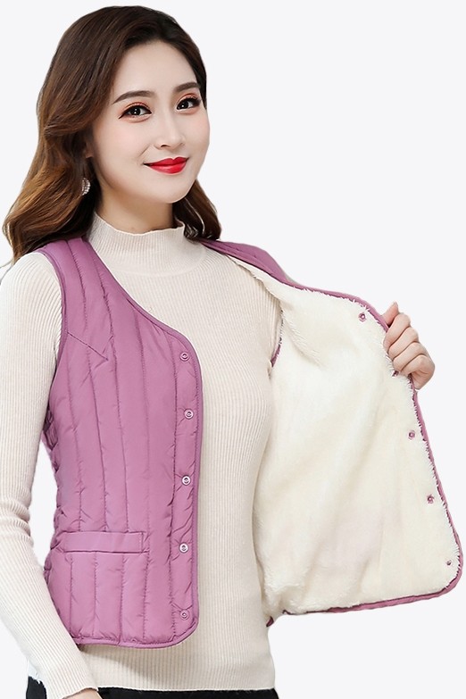 德绒保暖带口袋前后双兜内搭背心女秋冬加绒加厚防寒打底贴身上衣