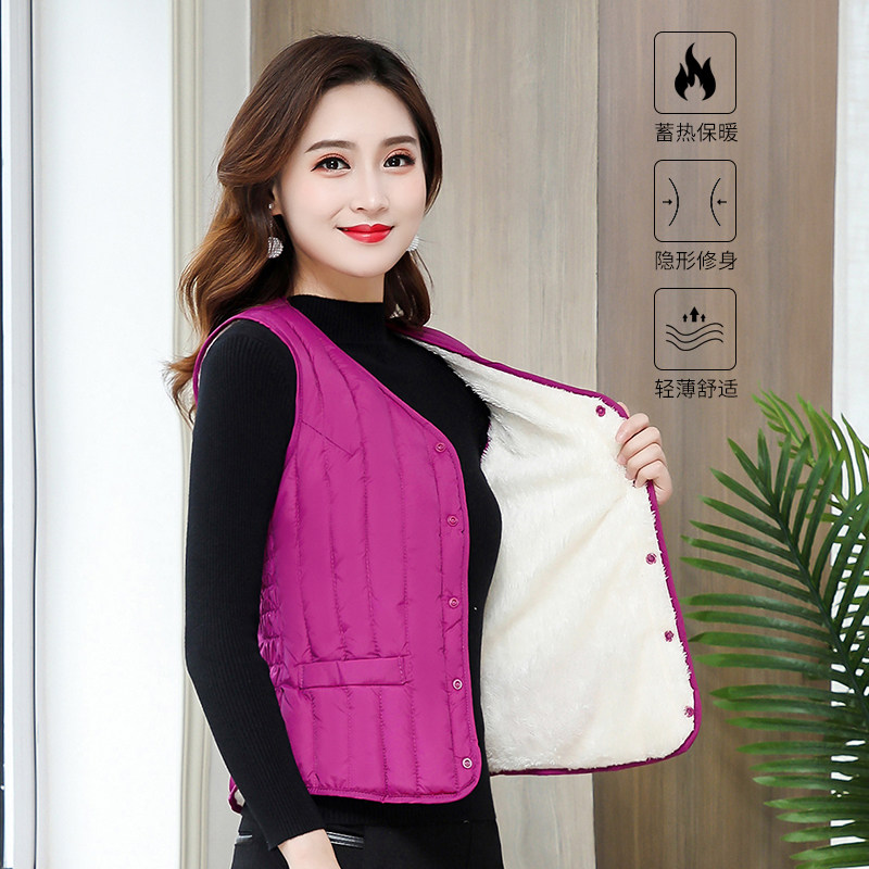 新款保暖羊羔绒加厚加绒马甲女冬季短款羽绒棉外穿背心女打底马夹