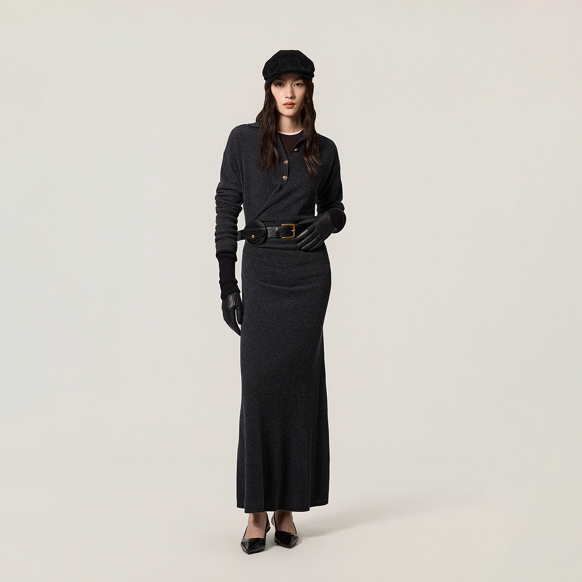 【季末折扣】Woolmark认证OCHIRLY欧时力 100%羊毛毛织连衣裙25冬