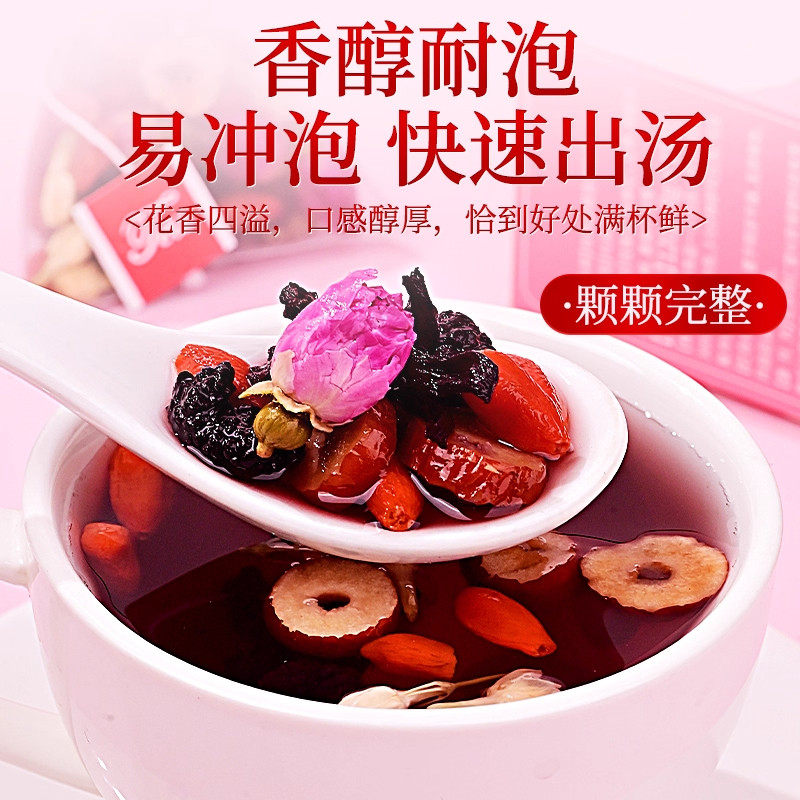 同仁玫瑰洛神花茶女士女生补气养血气血女人养生茶包冬季桑葚冲泡