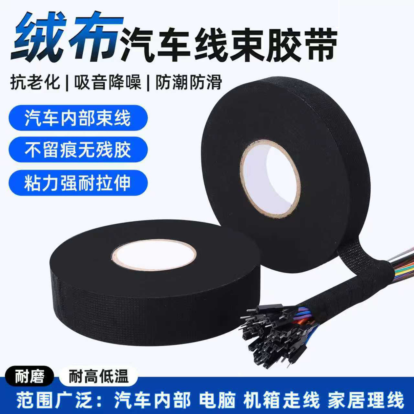必博士 汽车线束胶带耐高温发动机舱缠绕胶带高柔韧性保护限速涤纶胶带捆扎线束防磨损修复胶带 消除中控异响