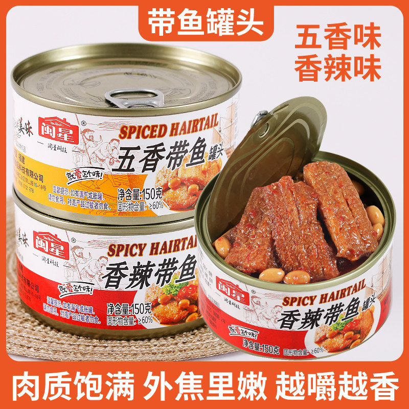 闽星【带鱼罐头*6罐】即食深海海鲜零食五香香辣下饭下酒菜