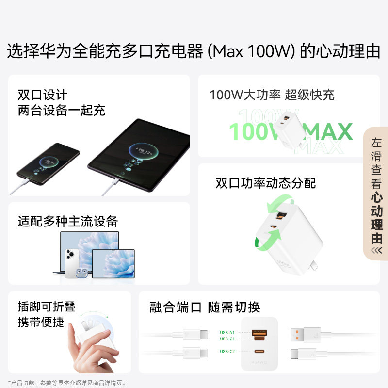 华为原装充电器100w多口全能充mate80pro/pura80快充手机平板通用