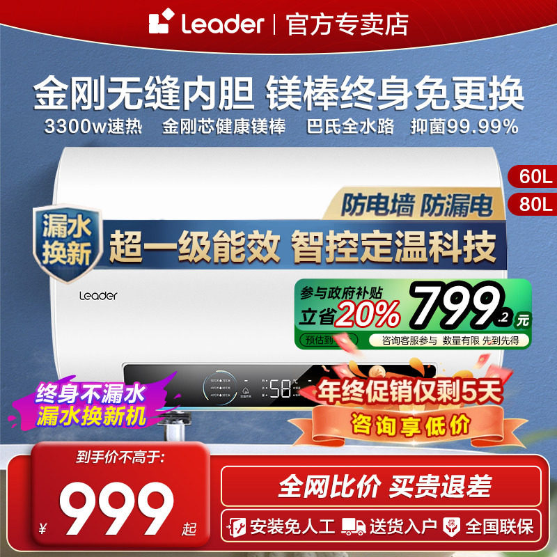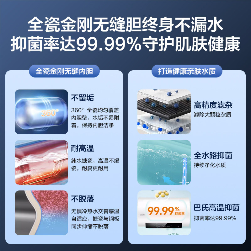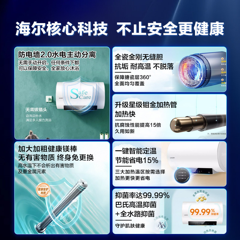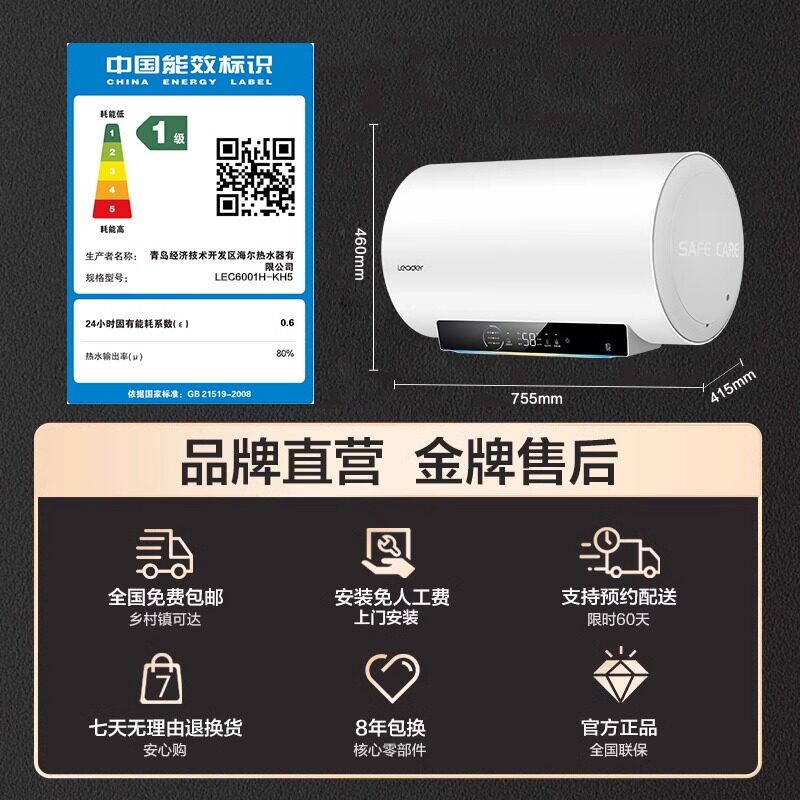 Z海尔电热水器电家用洗澡50升60/80L一级能效储水式统帅KH5官方店