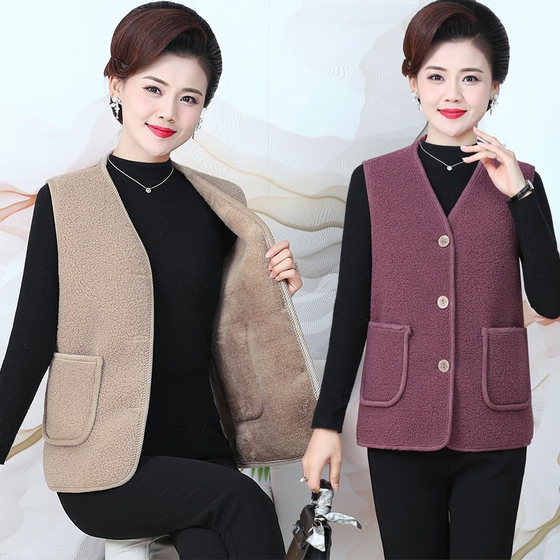 时尚马夹女中年妈妈装冬装加绒加厚纯色背心坎肩中老年马甲女外穿