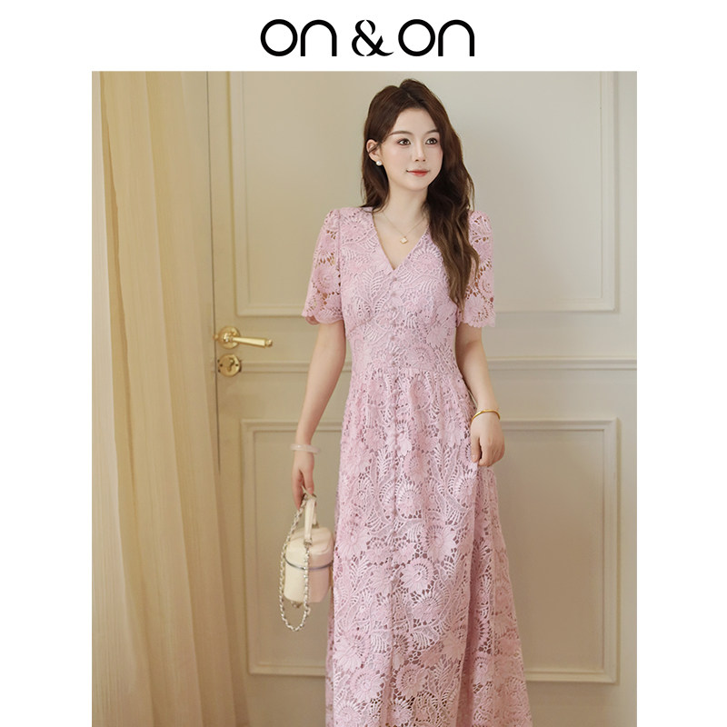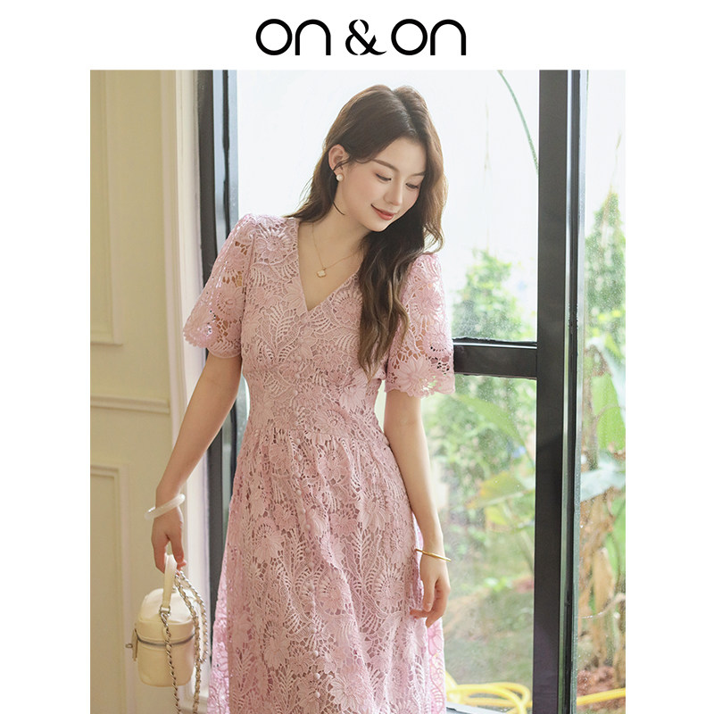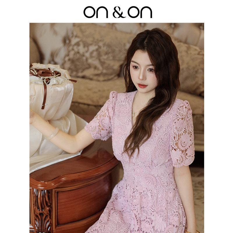 ON&ON/安乃安2026春夏新款韩系多巴胺可露丽气质蕾丝钩花连衣裙