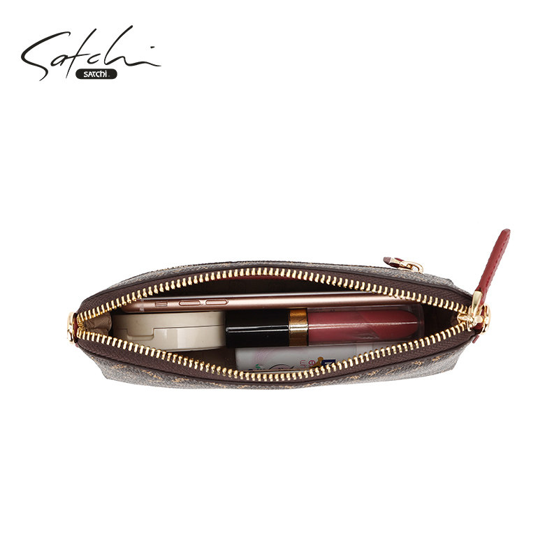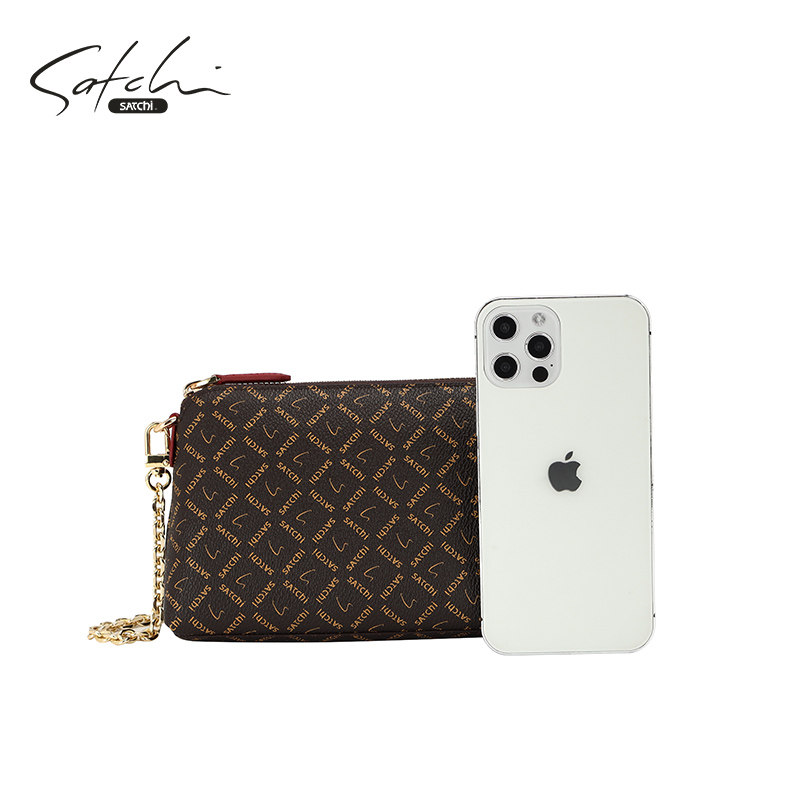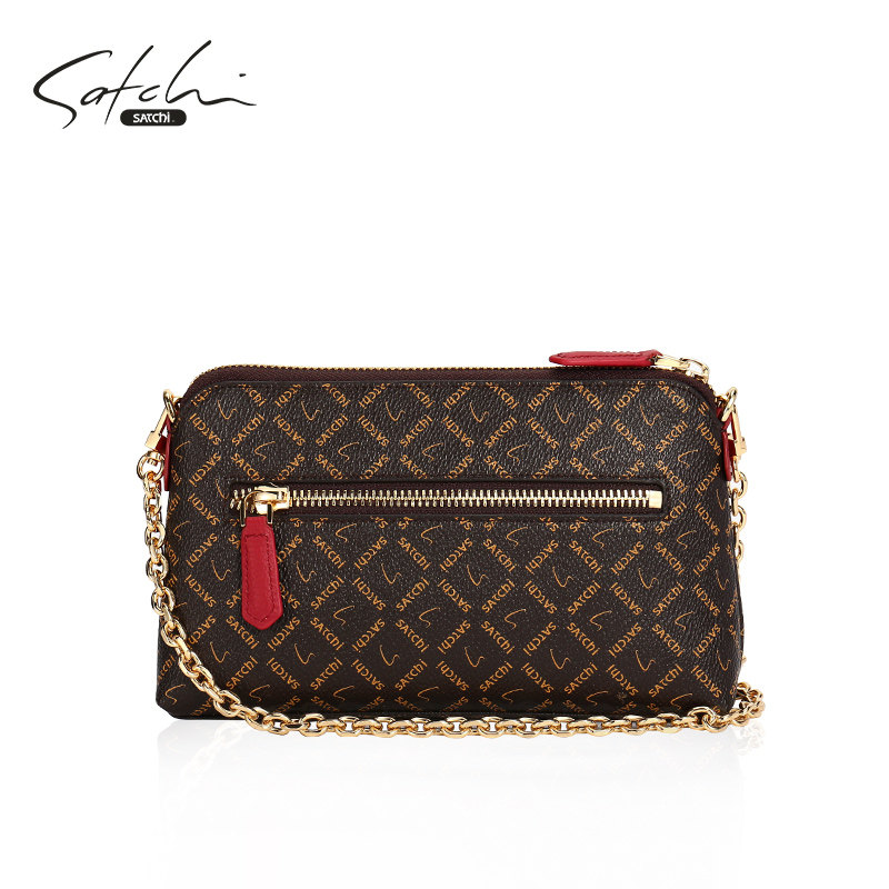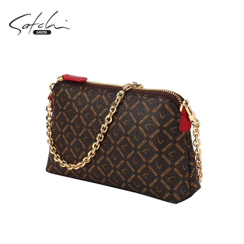 SATCHI/沙驰女包新款PVC经典印花女士手拿包潮流百搭女链条斜挎包