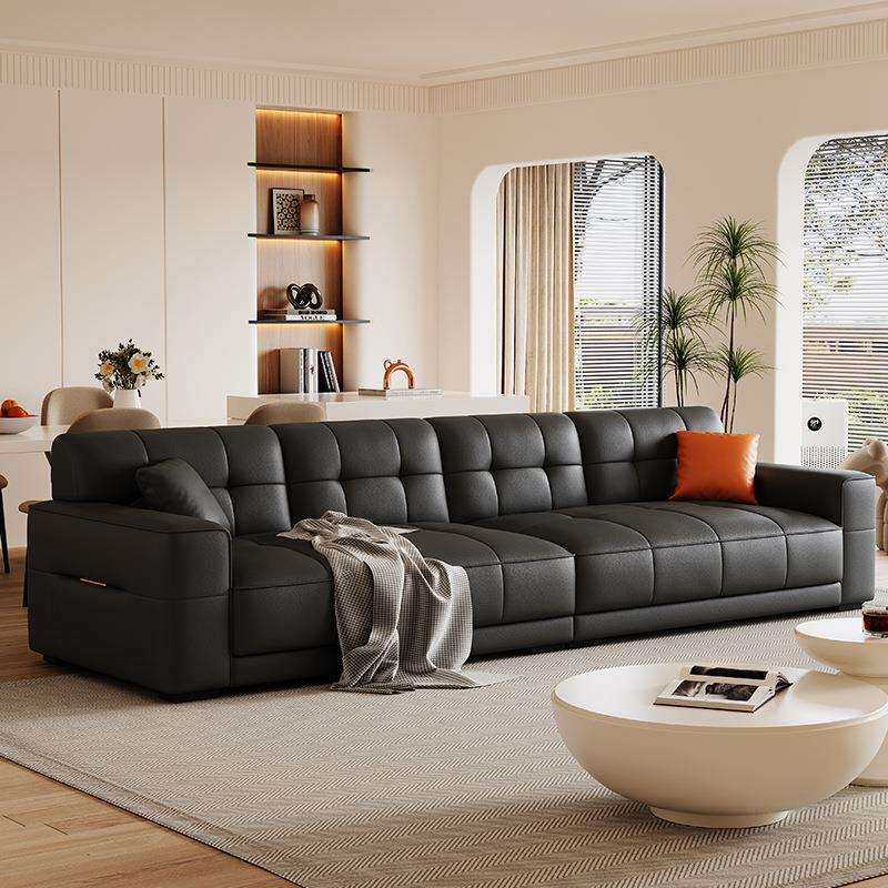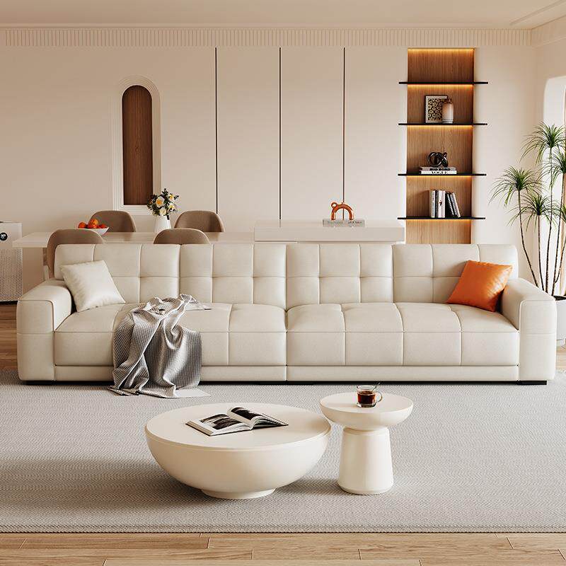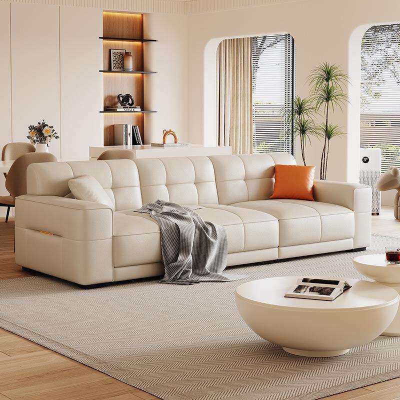 奶油风软体皮艺沙发小户型直排式沙发客厅转角贵妃猫抓皮沙发组合