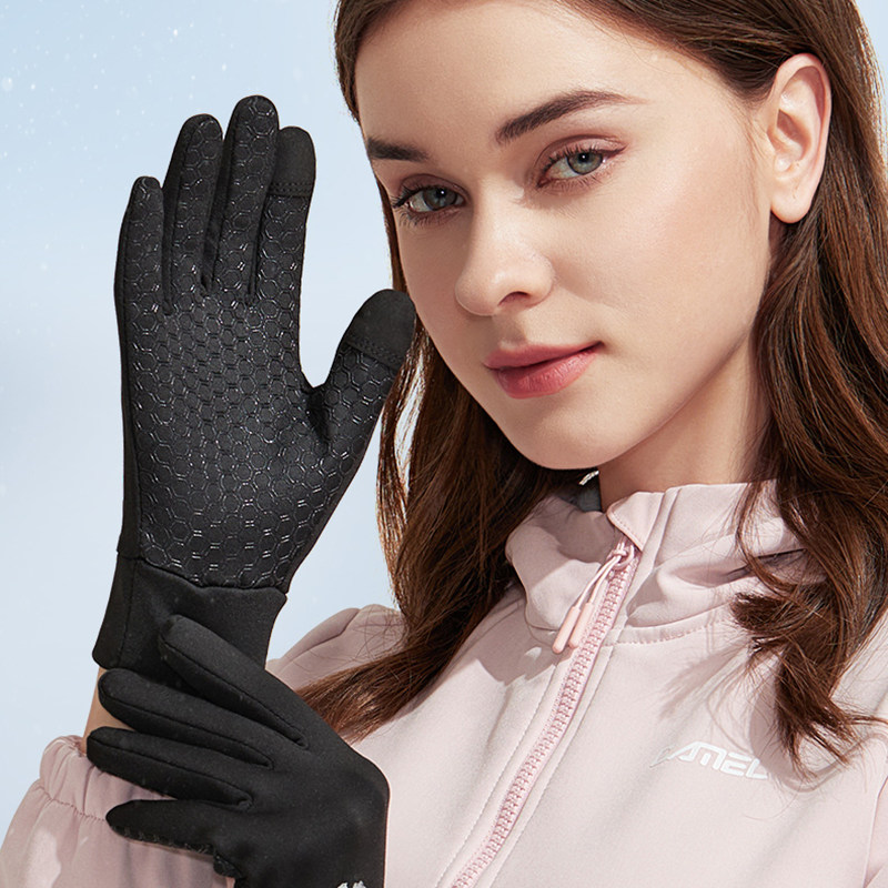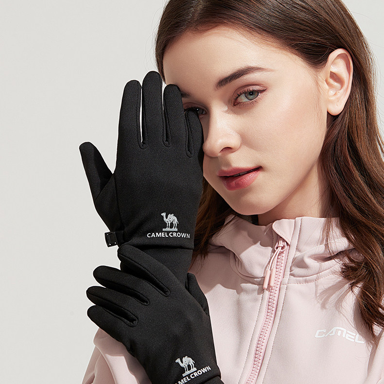 骆驼手套冬季男士户外跑步运动防寒薄绒保暖女可触屏防滑骑行手套