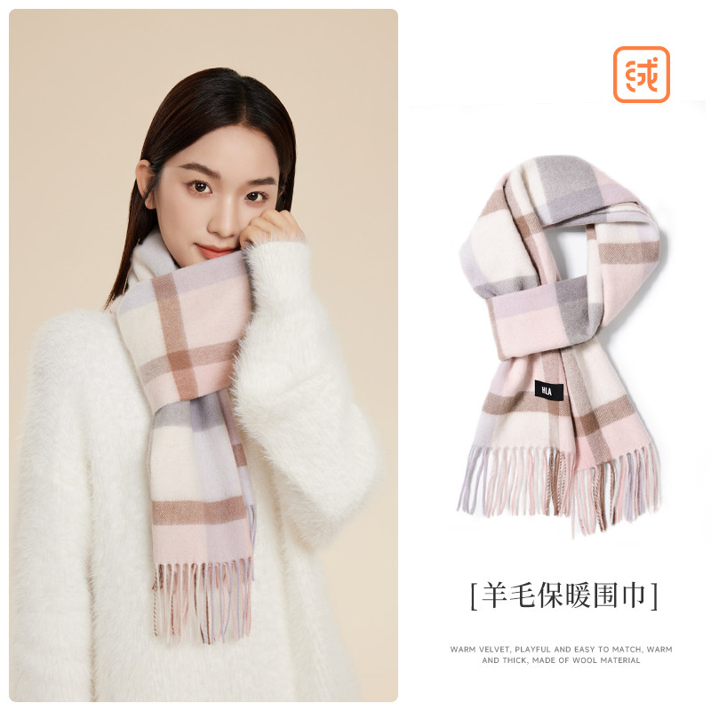 HLA/海澜之家围巾女士新款纯羊毛秋冬保暖防寒潮流百搭礼物礼盒装