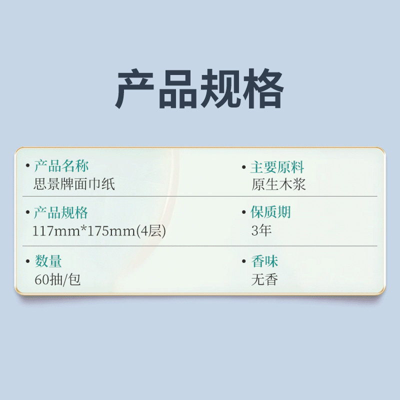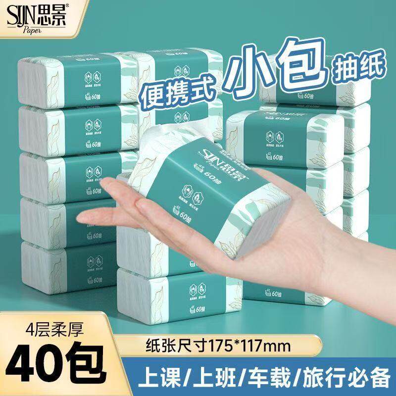 思景4层加厚80包家用面巾纸抽纸小号外出必备原生木浆抽取式