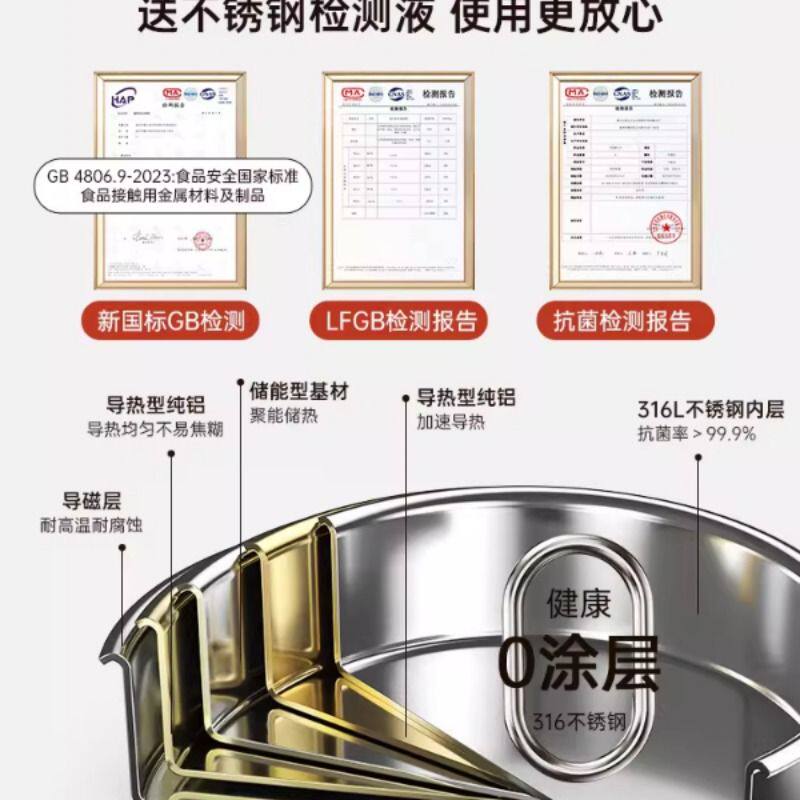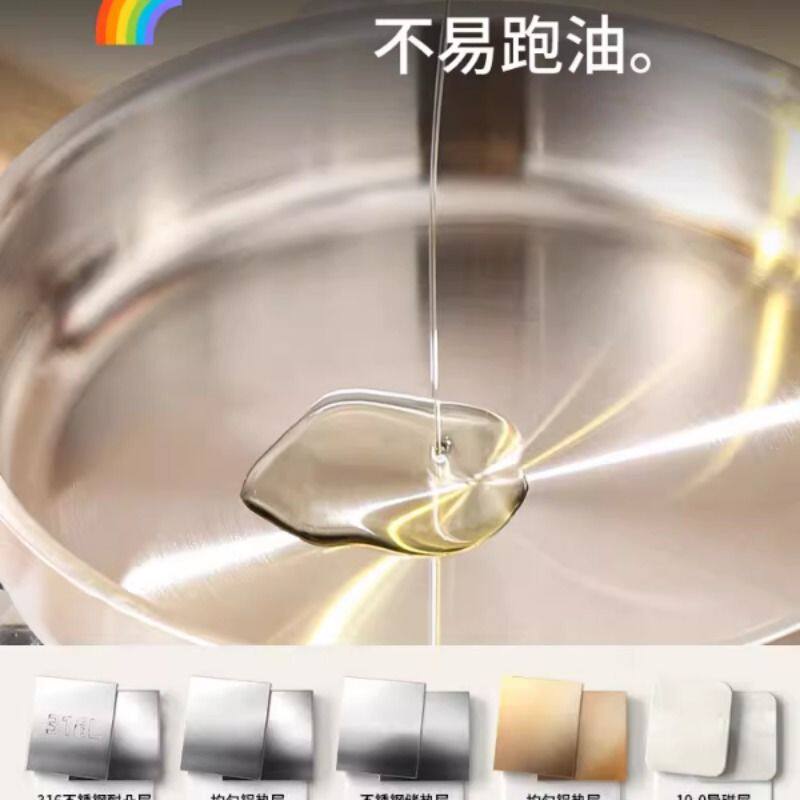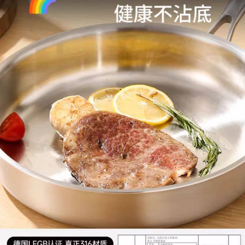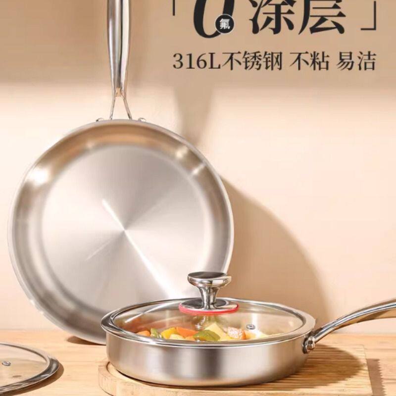 18/10不锈钢无涂层平底锅家用不粘锅电磁炉专用煎锅煎蛋不沾锅具