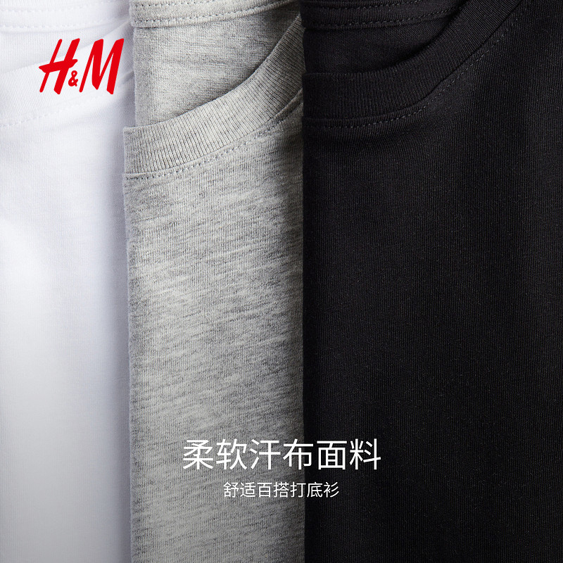 HM童装儿童男童T恤冬季棉质圆领居家休闲打底衫3件装0503569