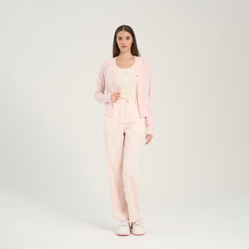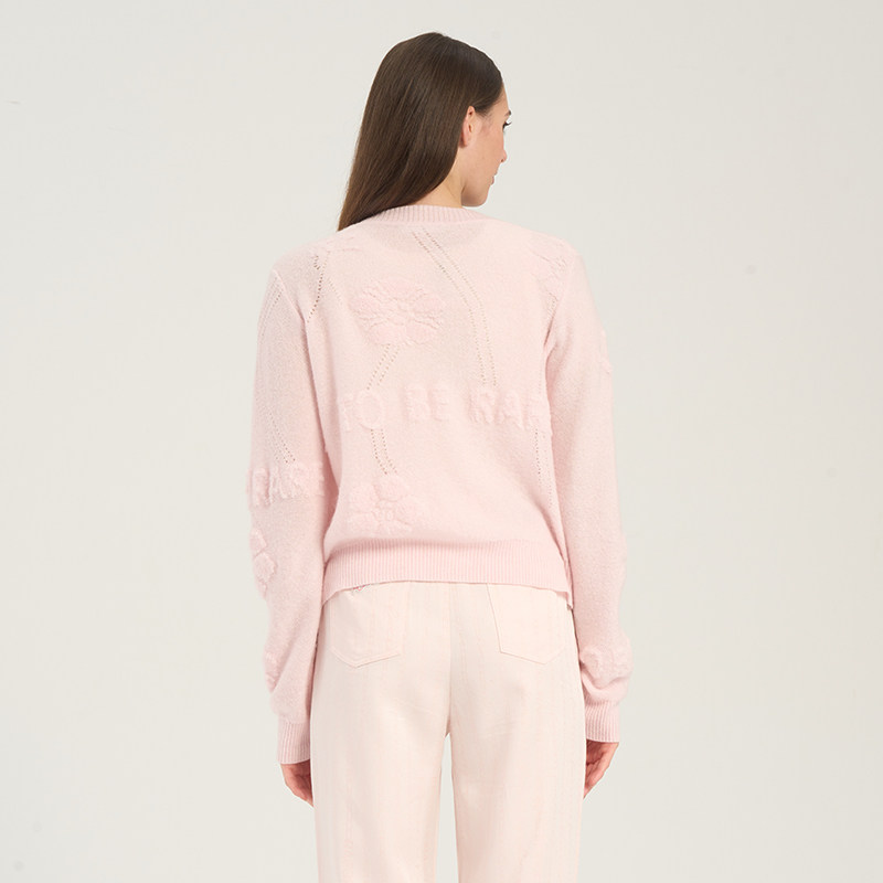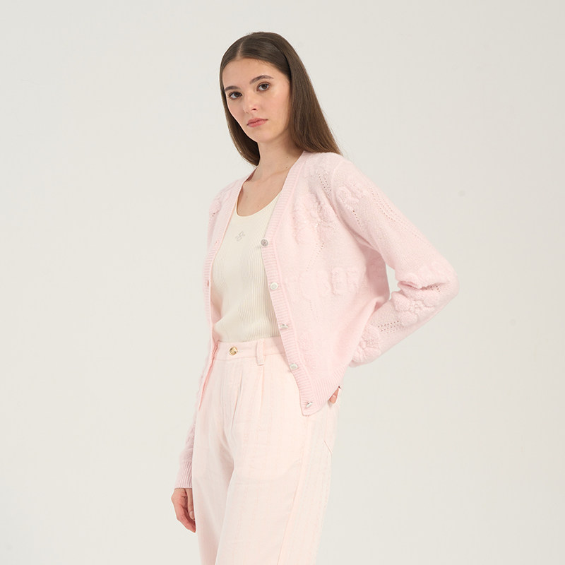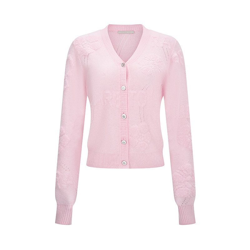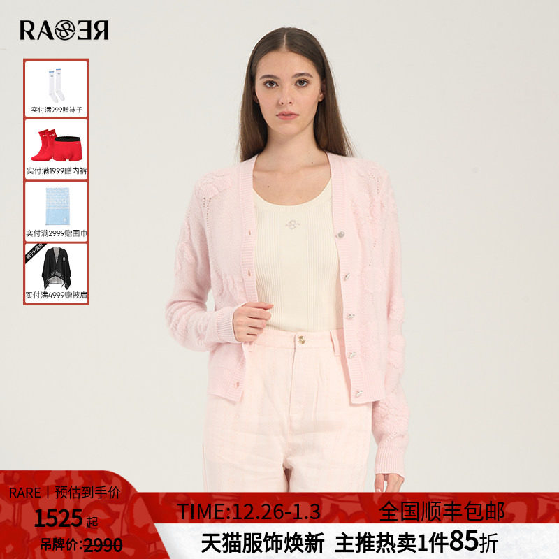 RARE威雅女装 春夏新款软糯蓬松马海毛V领女士粉色长袖毛开衫