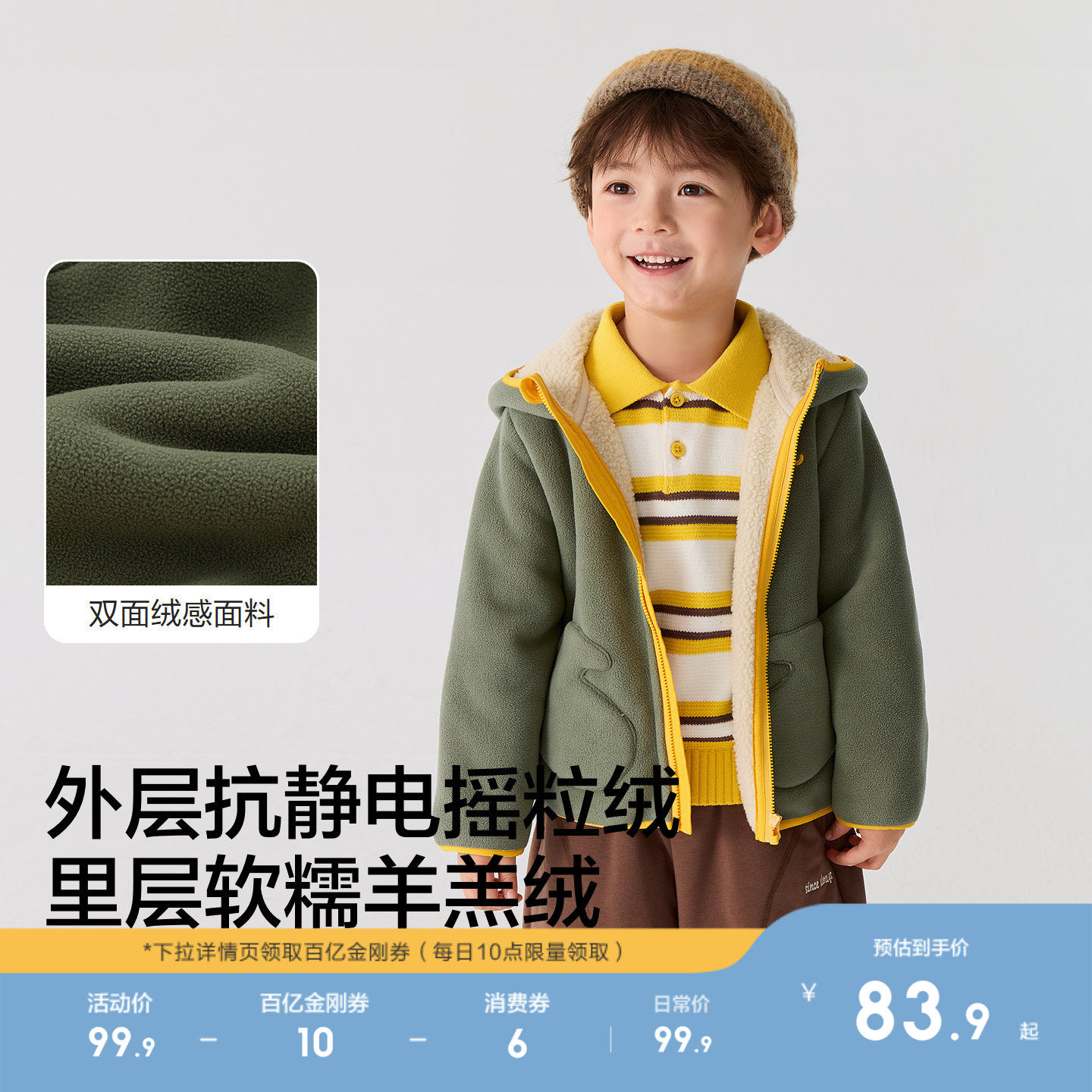 巴拉巴拉童装儿童外套宝宝女童男童新款加绒上衣2025秋冬摇粒绒潮