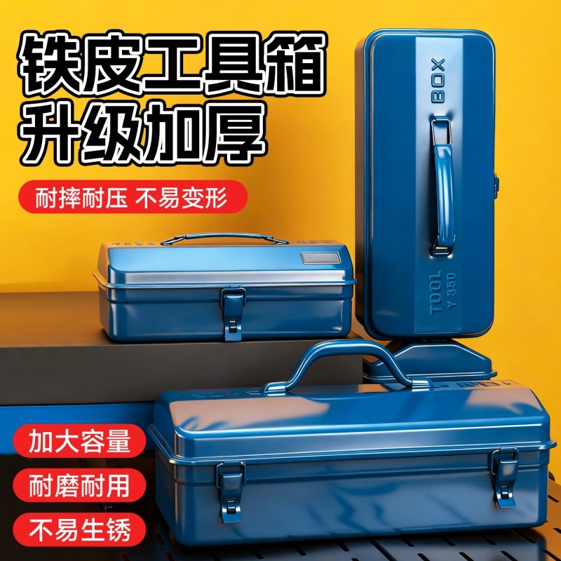 厚大号工业级收纳箱多功能家用汽修手提式收纳盒升级铁皮工具箱