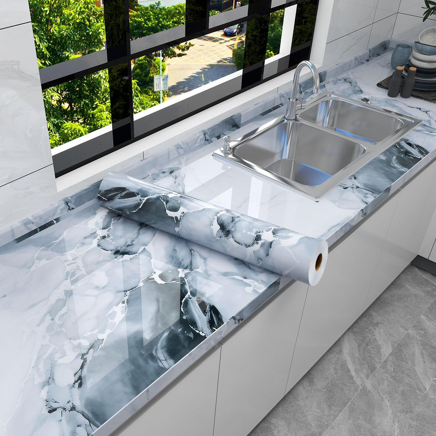 厨房墙面防油贴纸自粘防火耐高温大理石灶台面防水防潮墙贴墙壁纸