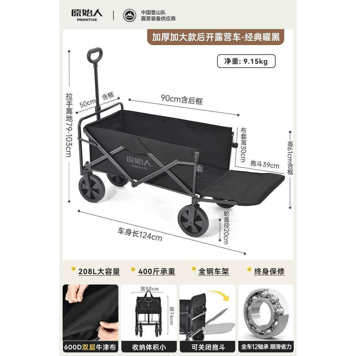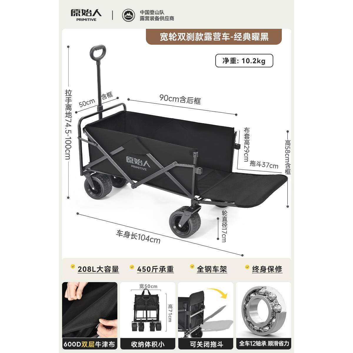 原始人露营推车户外折叠手推营地车儿童可躺野餐拖车旅行野营大号