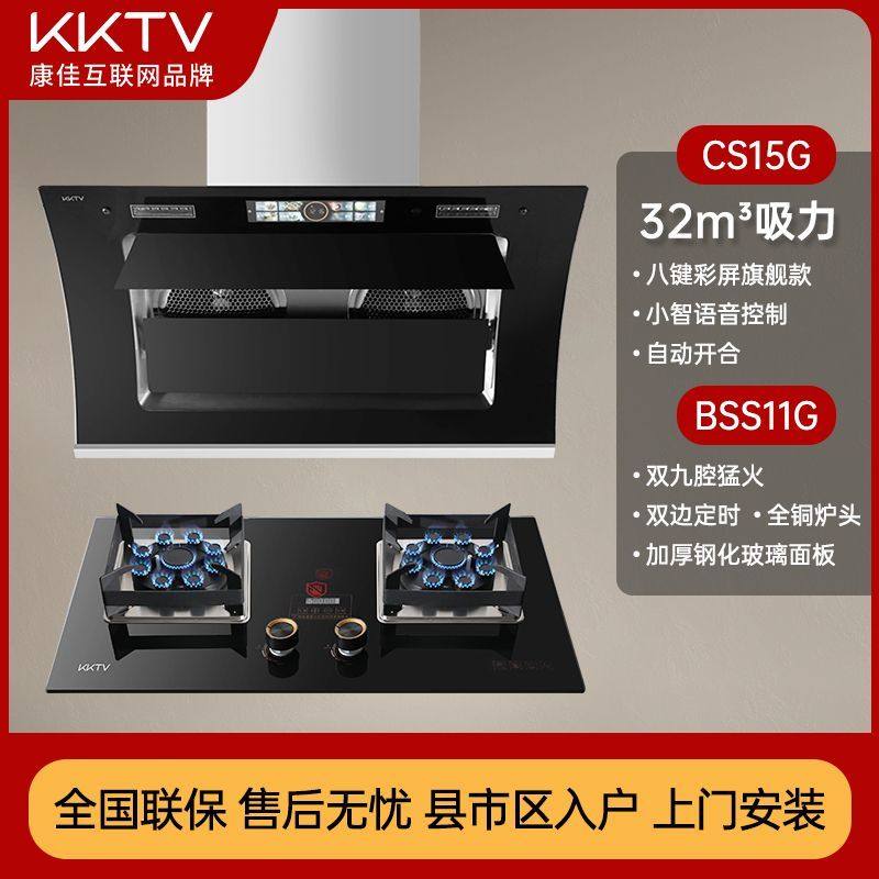 KKTV康佳互联网品牌侧吸油烟机家用厨房大吸力油烟机猛火灶套装