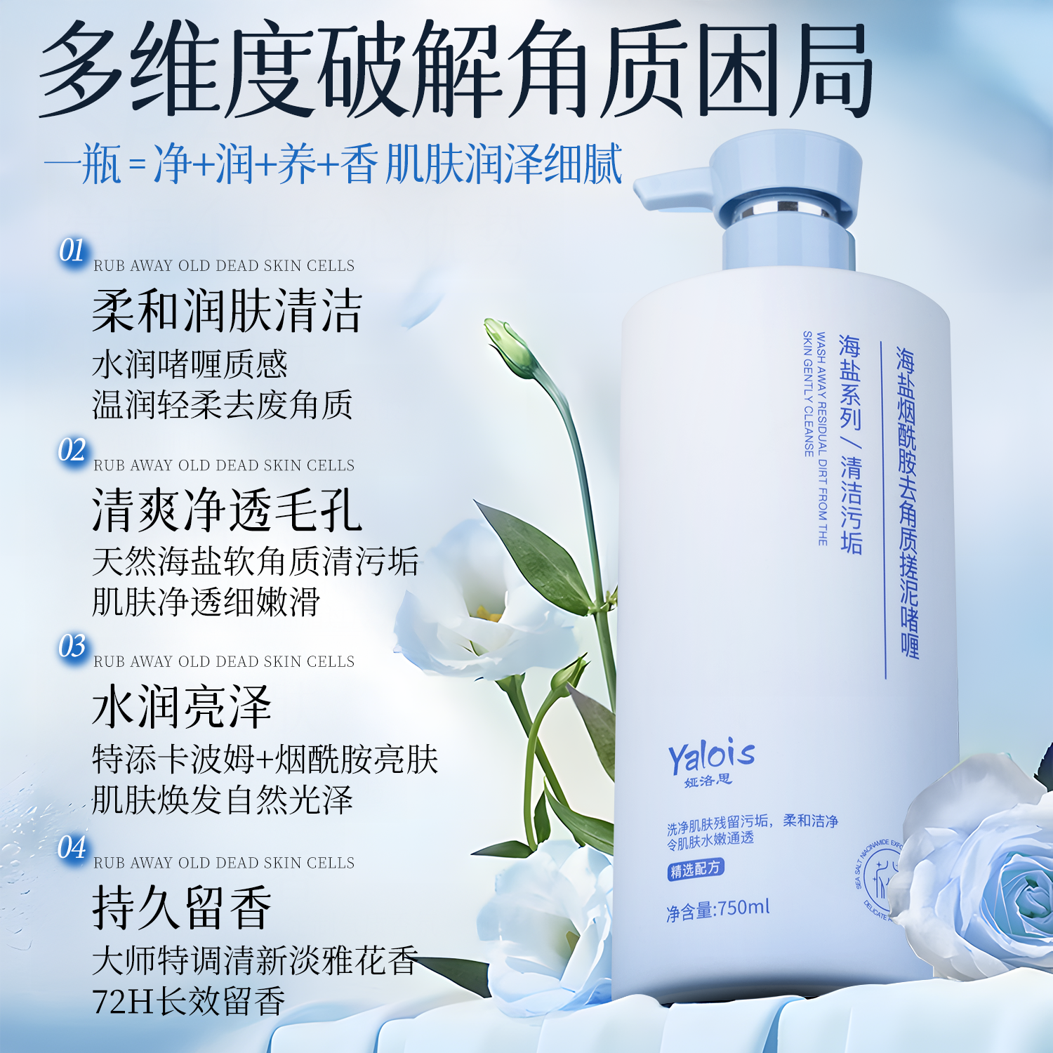 海盐烟酰胺去角质搓泥宝啫喱身体清洁去死皮全身男女浴场搓澡专用