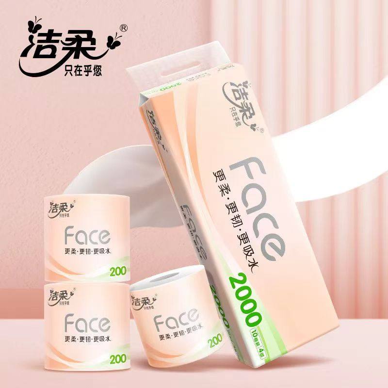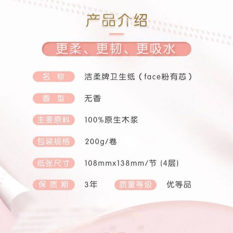 洁柔有芯卷纸粉face2000g10卷提装家庭实惠厕所超大卷易冲散卷纸