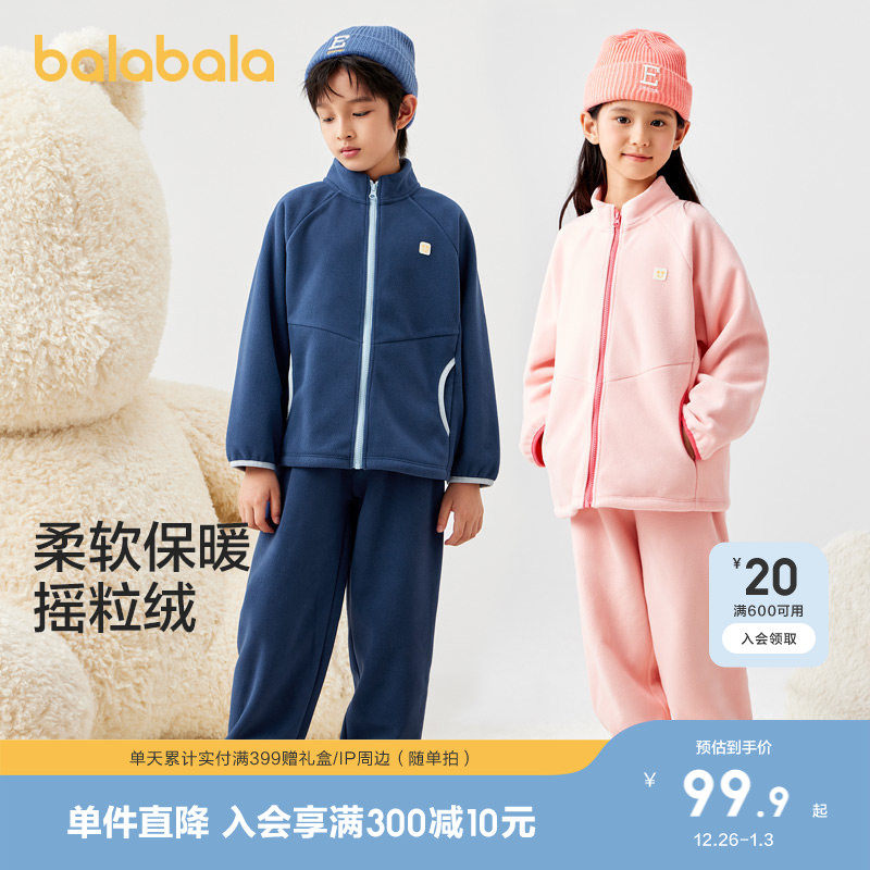 巴拉巴拉儿童睡衣套装加厚摇粒绒宝宝中大童男童女童家居服可外出