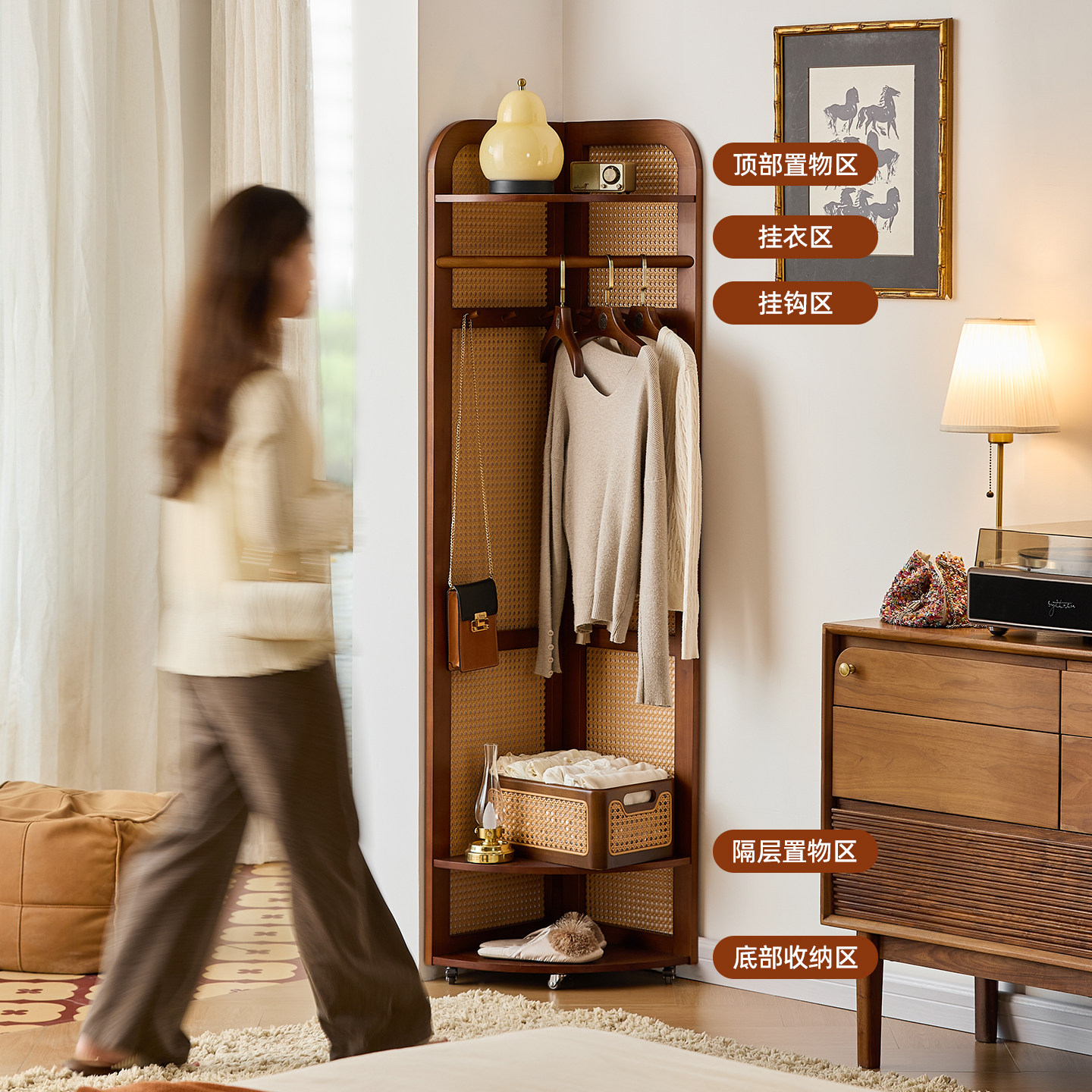多功能转角衣帽架不占空间实木承重强