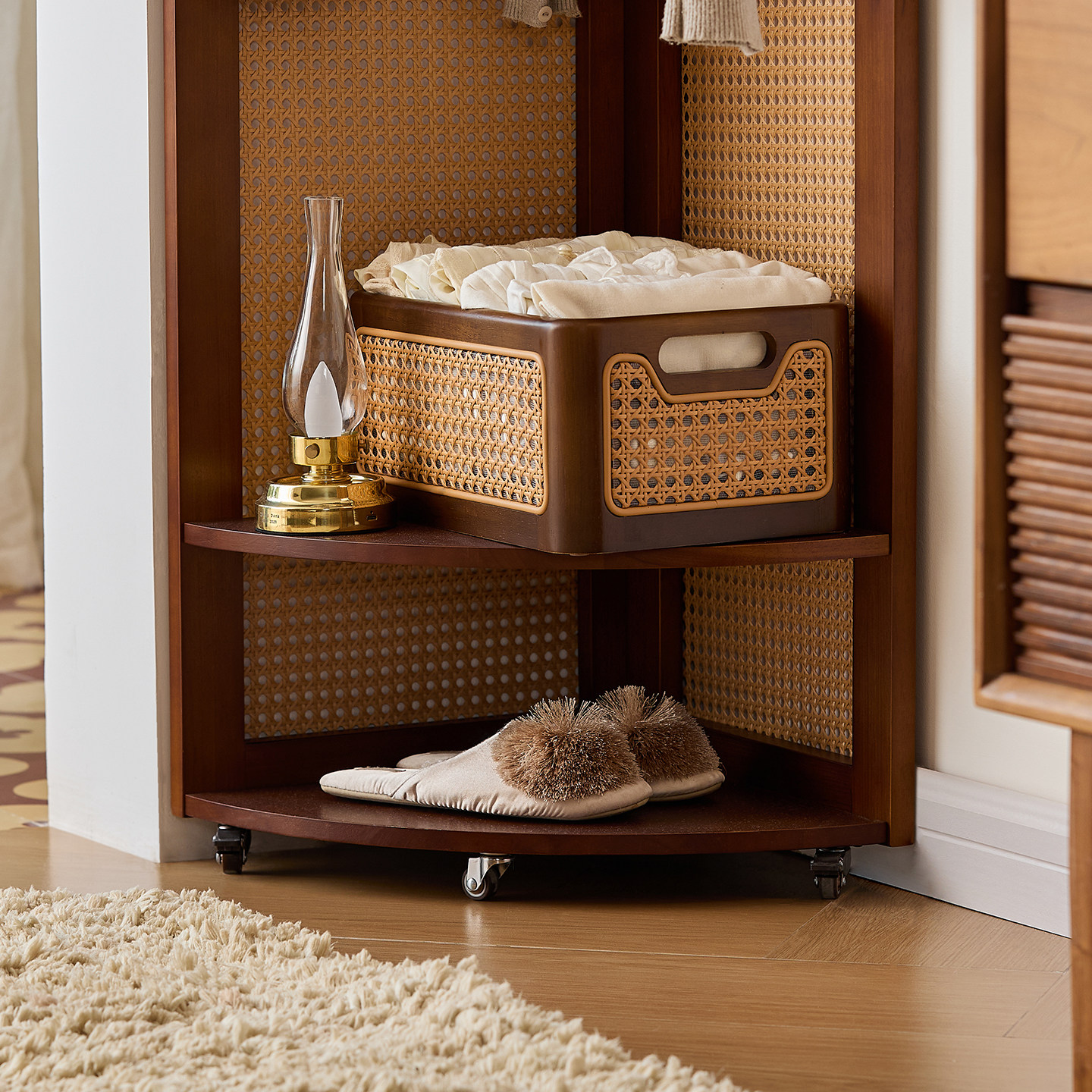 家用卧室转角落地衣帽架带滑轮挂衣服帽子木质架子加粗加厚置物架