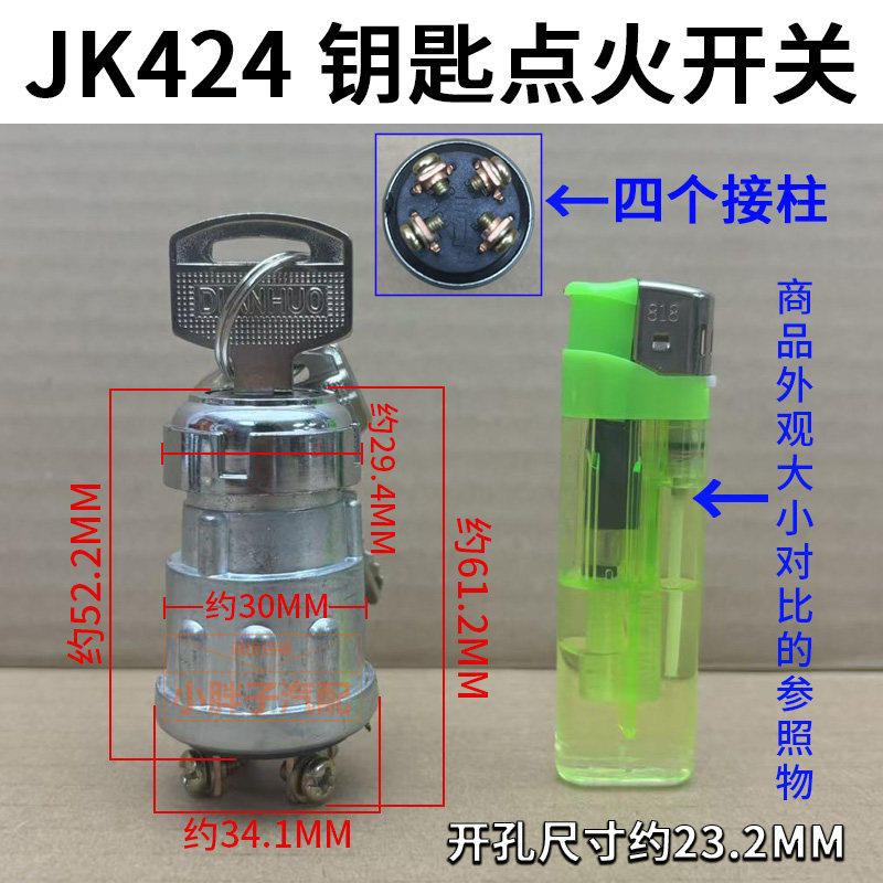 JK423点火开关带钥匙适用于拖拉机农用车改装 通用汽车配件纯铜接