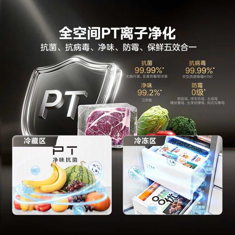 海尔217L风冷无霜变频家用一级能效电冰箱黑金净化出租房小型官方