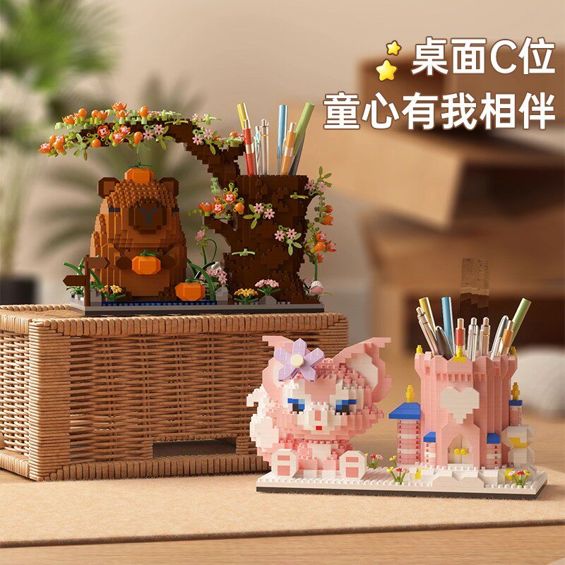 卡皮巴拉笔筒积木拼图摆件玲娜贝儿女孩系列拼装益智玩具生日礼物