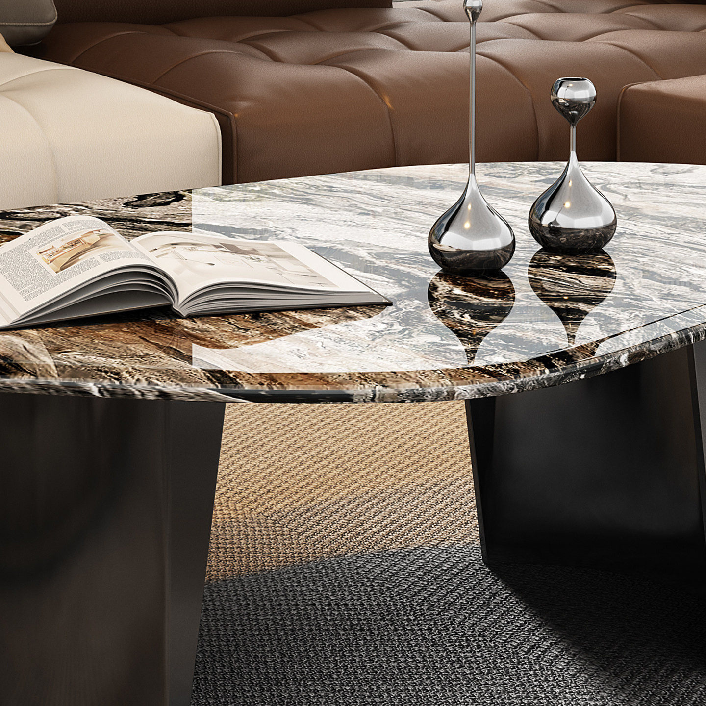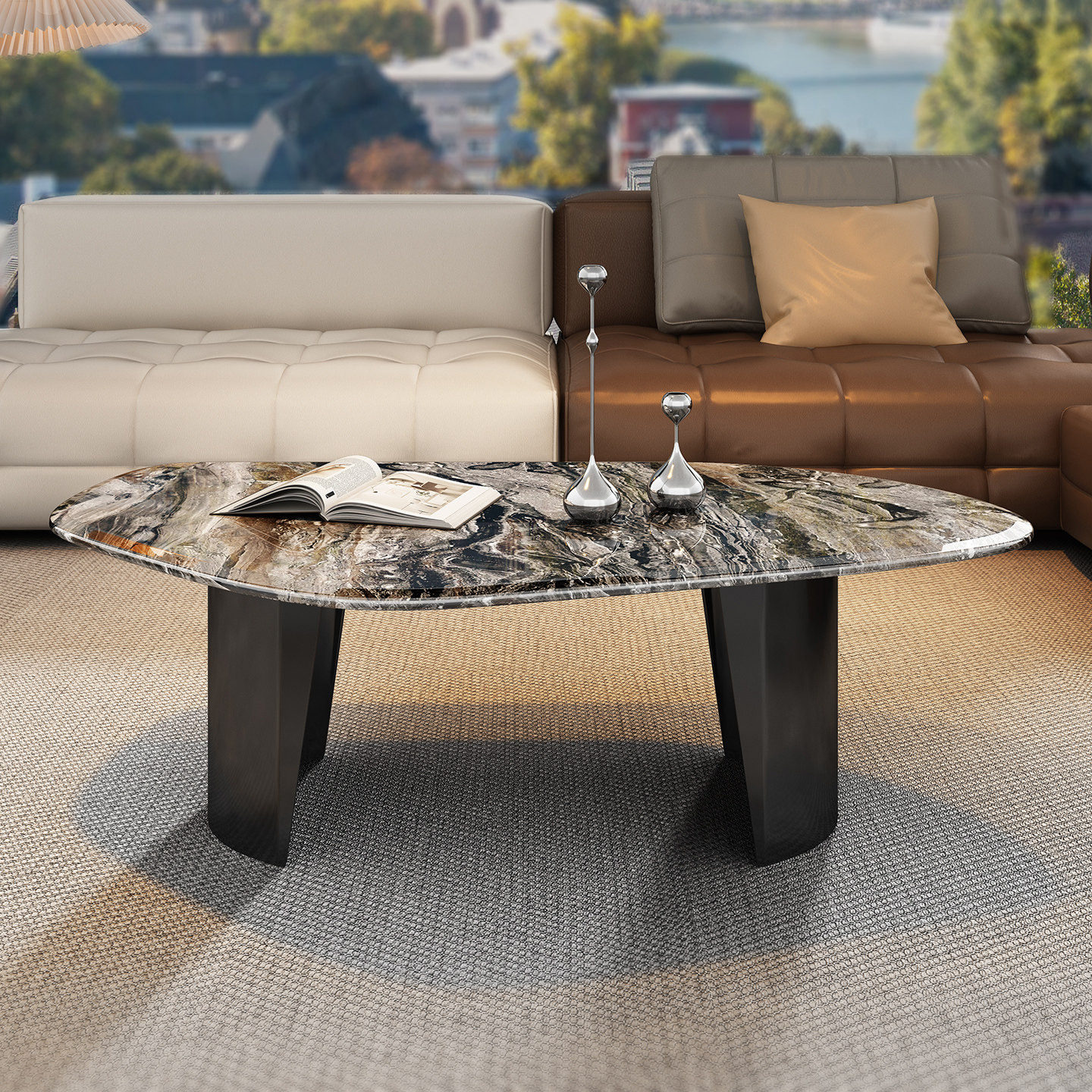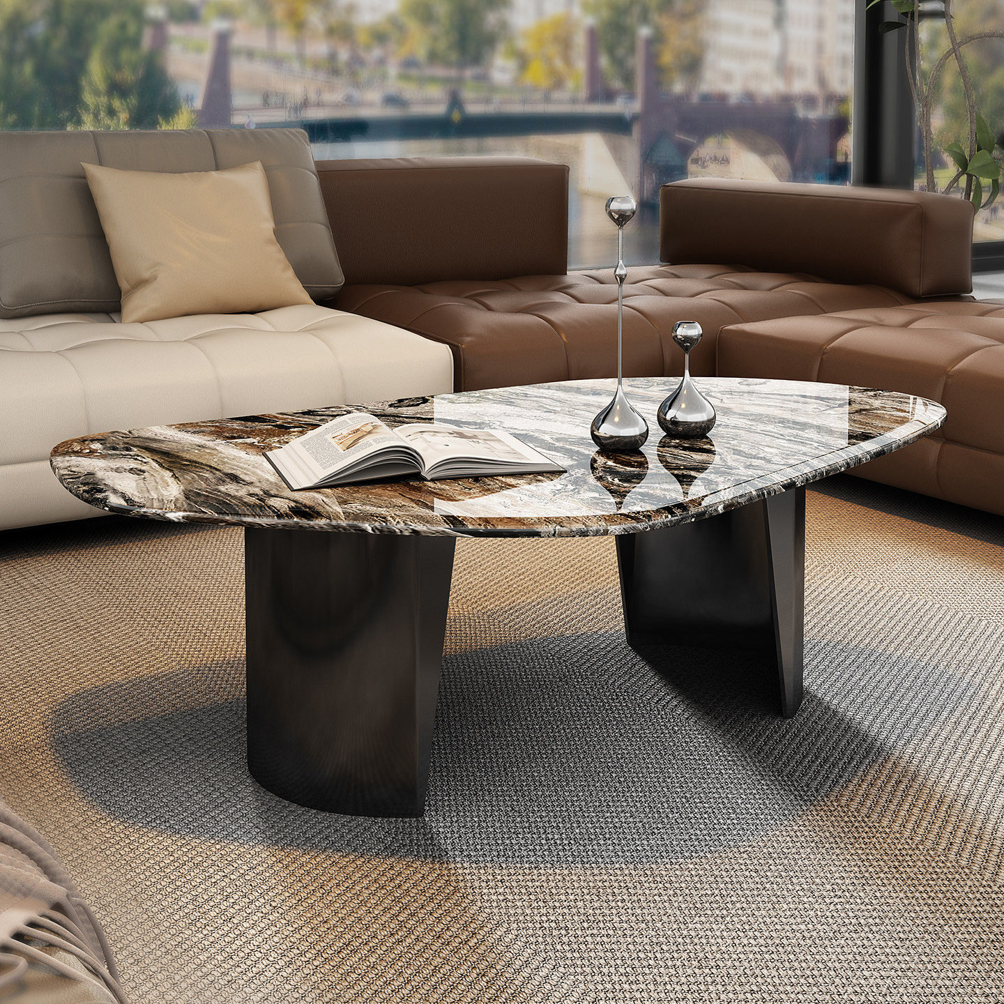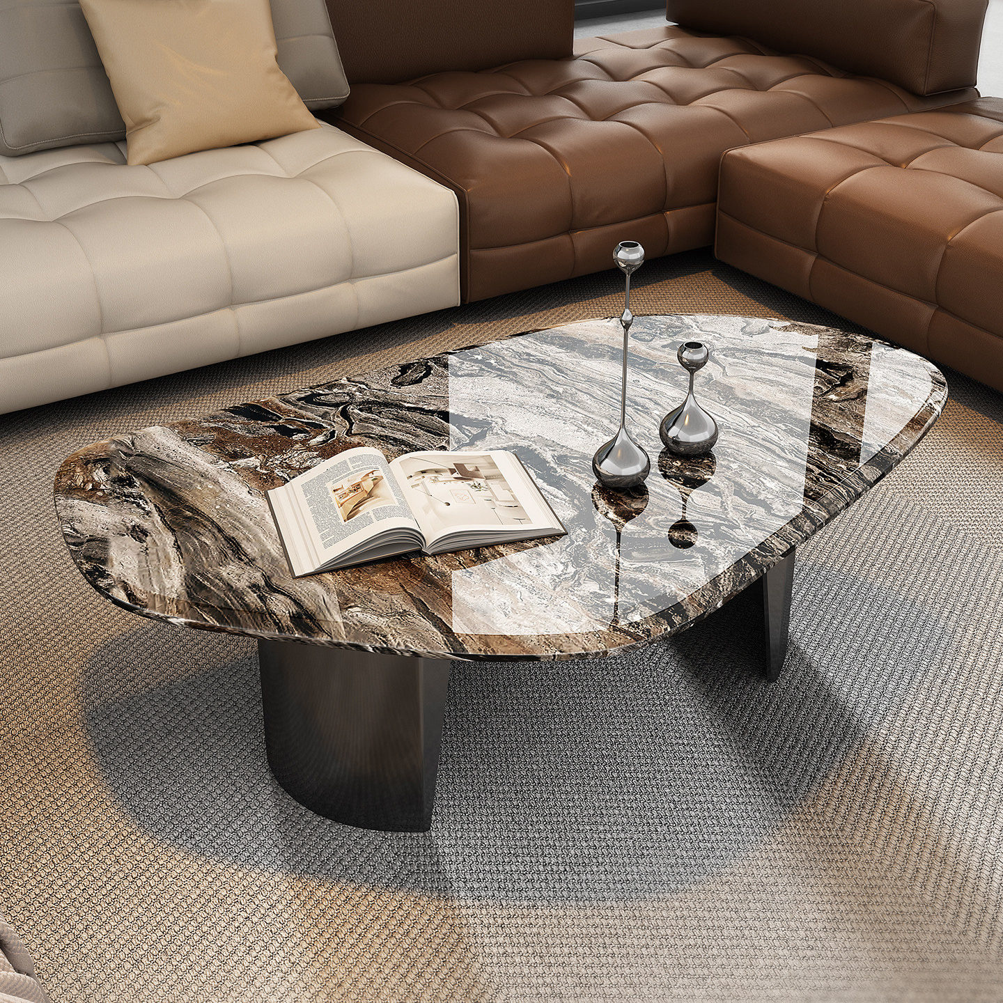天然进口威尼斯棕大理石茶几桌异形高端茶几大理石意式轻奢小户型